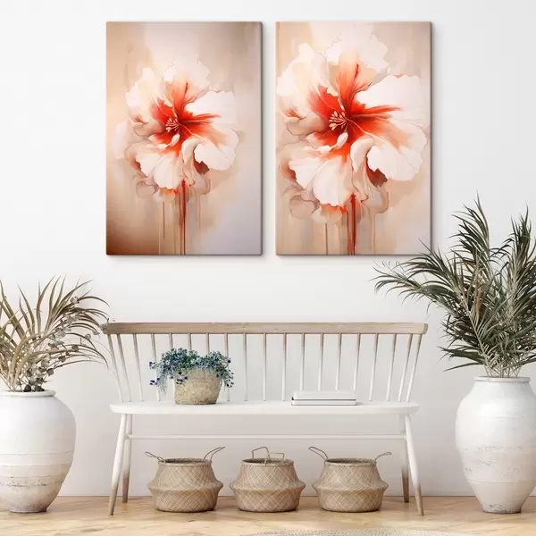 Картина Біло-коралові пелюстки на абстрактному тлі, спокійна композиція Арт. m01089
