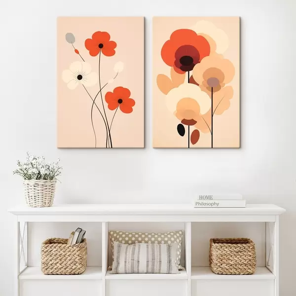 Картина Мінімалістичний квітковий диптих у теплих бежево-коралових тонах з графічними лініями m01090