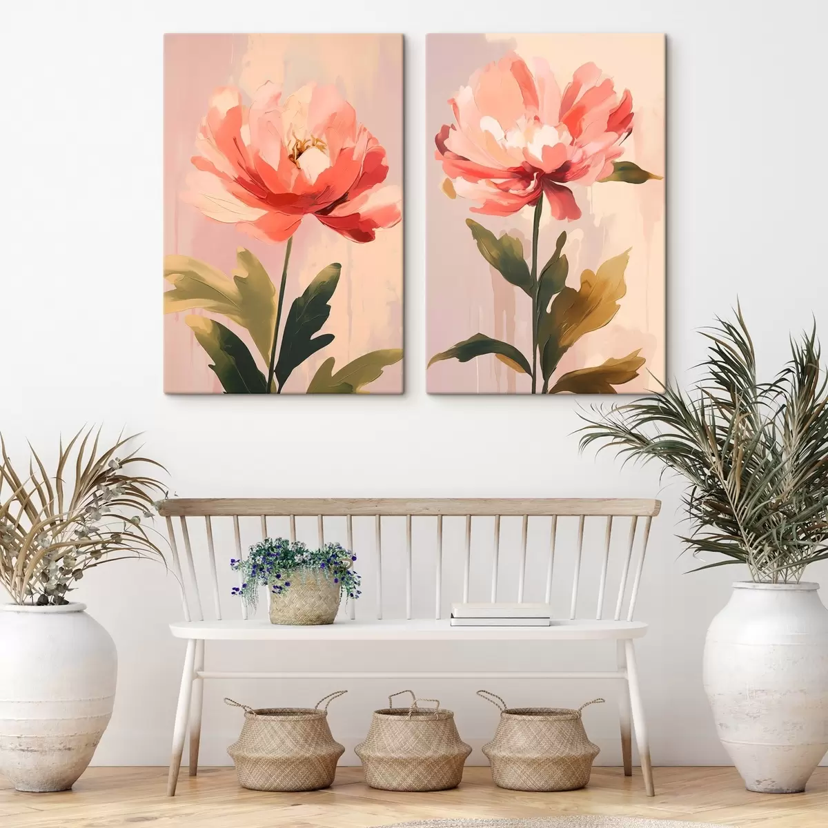 Картина Пастельні півонії на високих стеблах у теплих рожевих відтінках Арт. m01093
