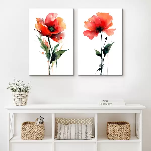 Картина Композиція з червоними маками на білому тлі в стилі акварелі m01100