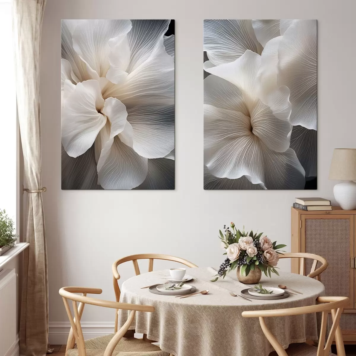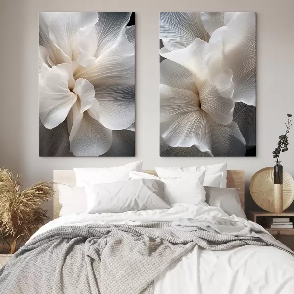 Картина Крупний план ніжних абстрактних білих квіткових пелюсток зі складними лініями та розмитим темним фоном Арт. m01117