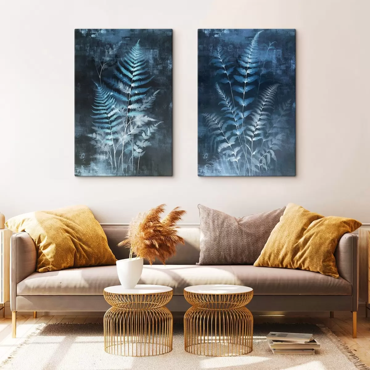 Картина Блакитні папороті та рослини на темному, фактурному тлі, з акцентом на складних деталях, ефект рентгенівського знімка Арт. m01121