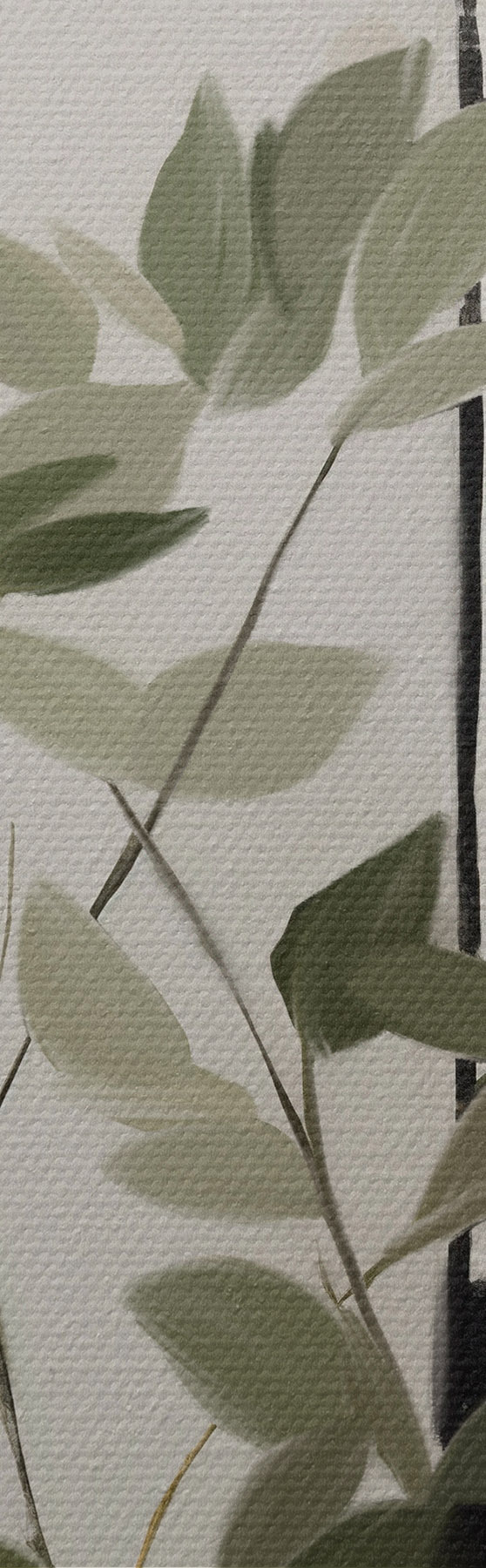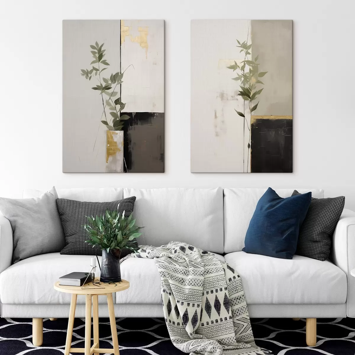 Картина Мінімалістична фактурна картина вази з зеленим листям на тлі абстрактних геометричних фігур m01126