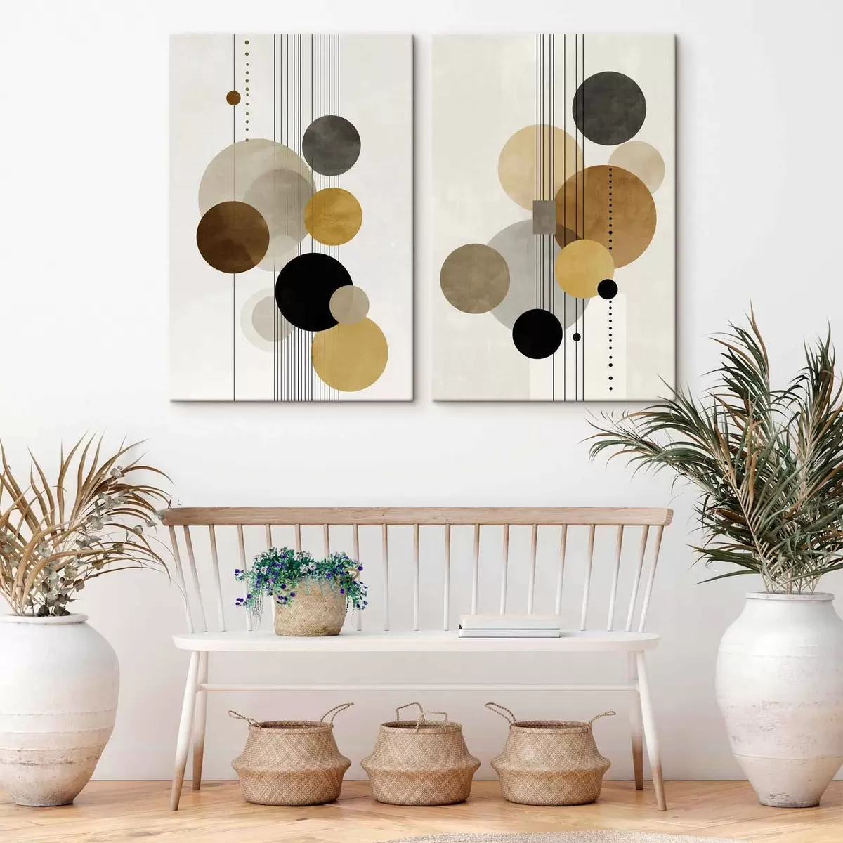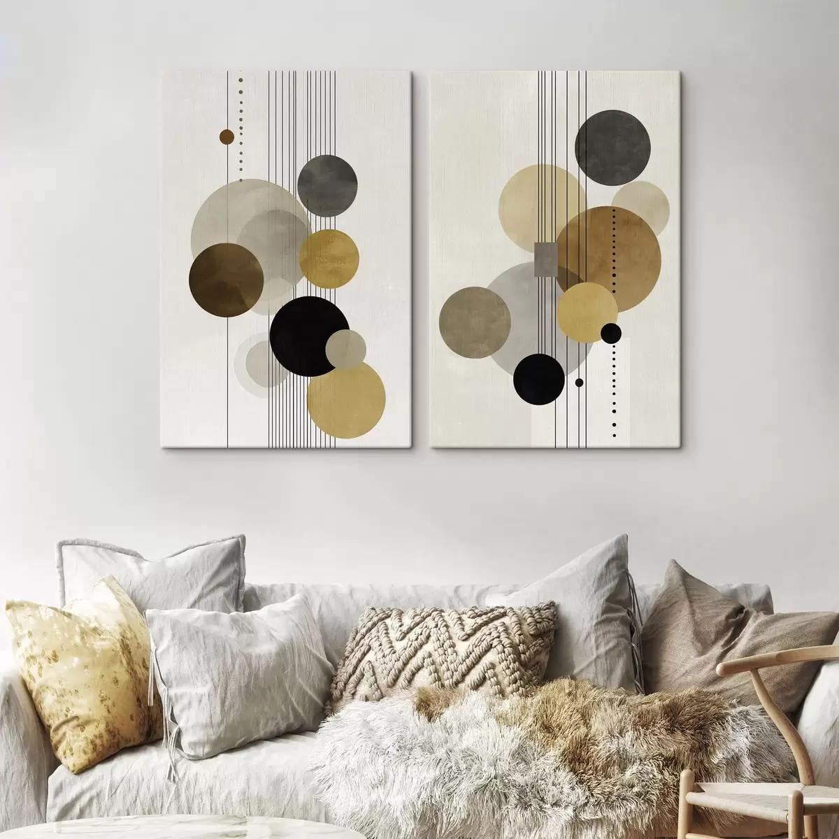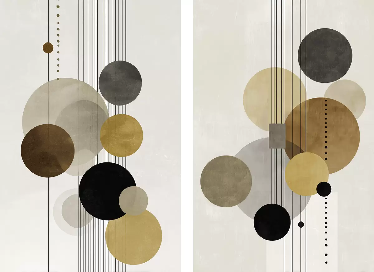 Картина абстракція з колами та лініями в теплих кольорах m01182
