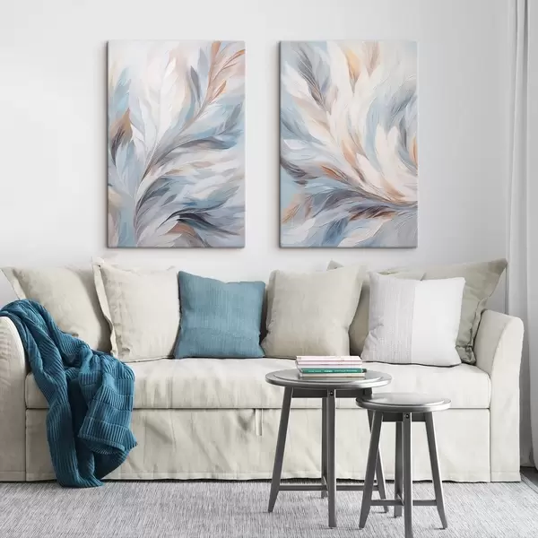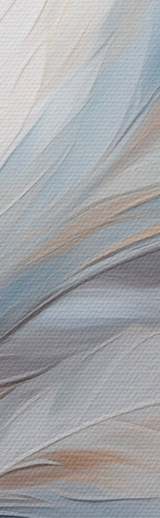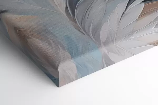 Картина Абстрактне зображення пір'я в відтінках білого, синього та коричневого кольорів, з м'якою, плавною текстурою та світлим фоном. m01234