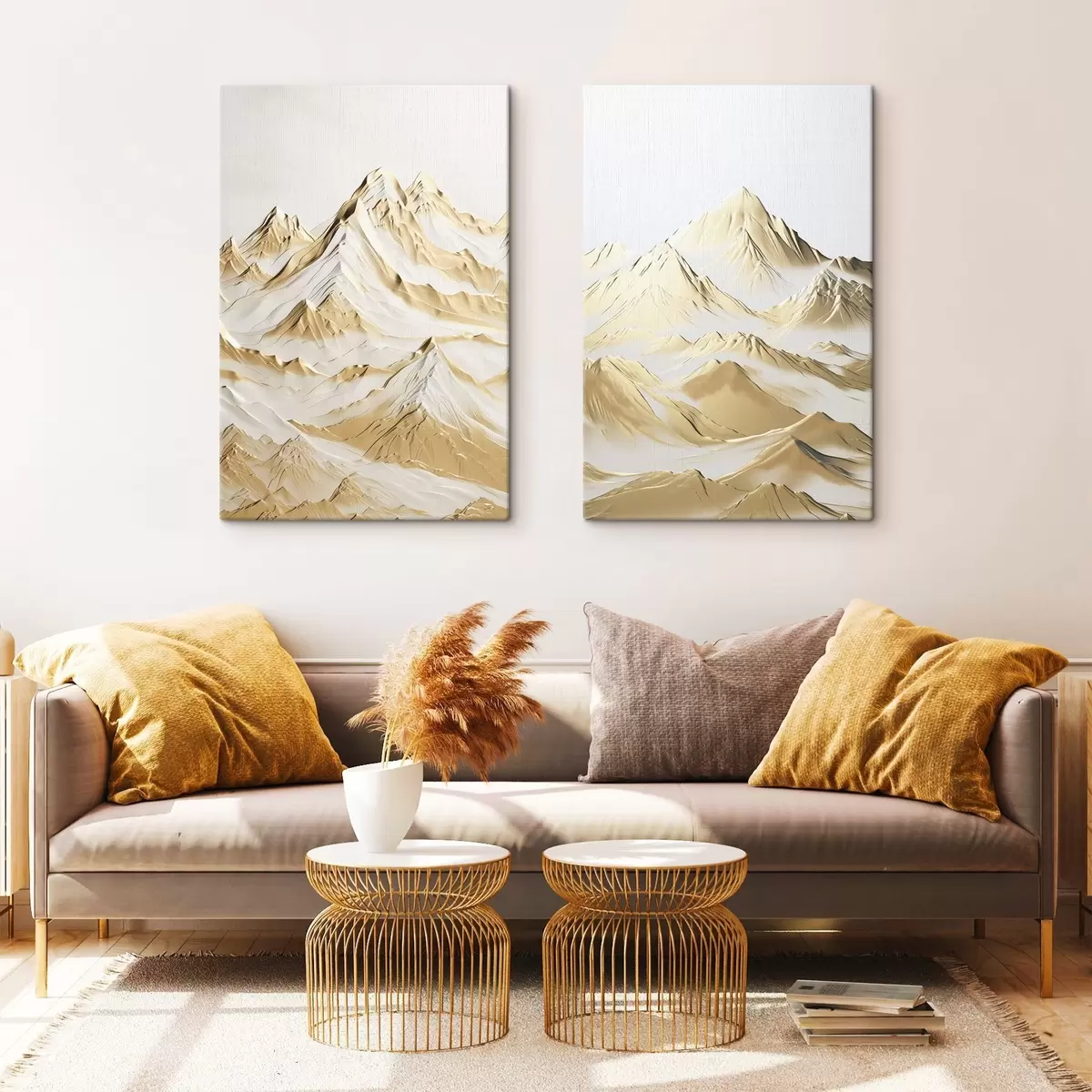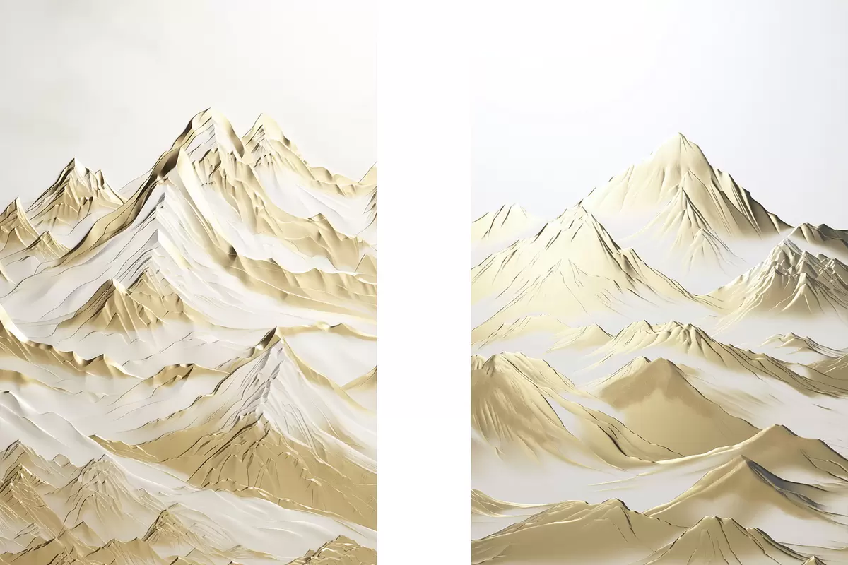 Картина Краєвид жовтих, засніжених гір з гострими вершинами і глибокими долинами під світлим небом Арт. m01236