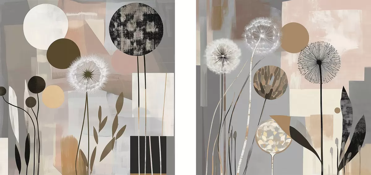 Картина Абстракція з кульбабами та рослинами Арт. m01276