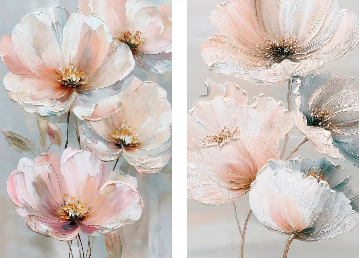 Картина Квітковий диптих у бежево-кораловій палітрі в стилі олійного живопису Арт. m30029