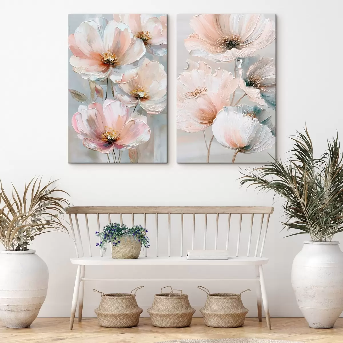 Картина Квітковий диптих у бежево-кораловій палітрі в стилі олійного живопису m30029