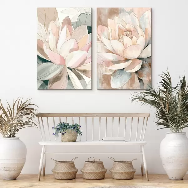 Картина Квіткова композиція з великими лотосами в пастельно-кораловій гамі Арт. m30034