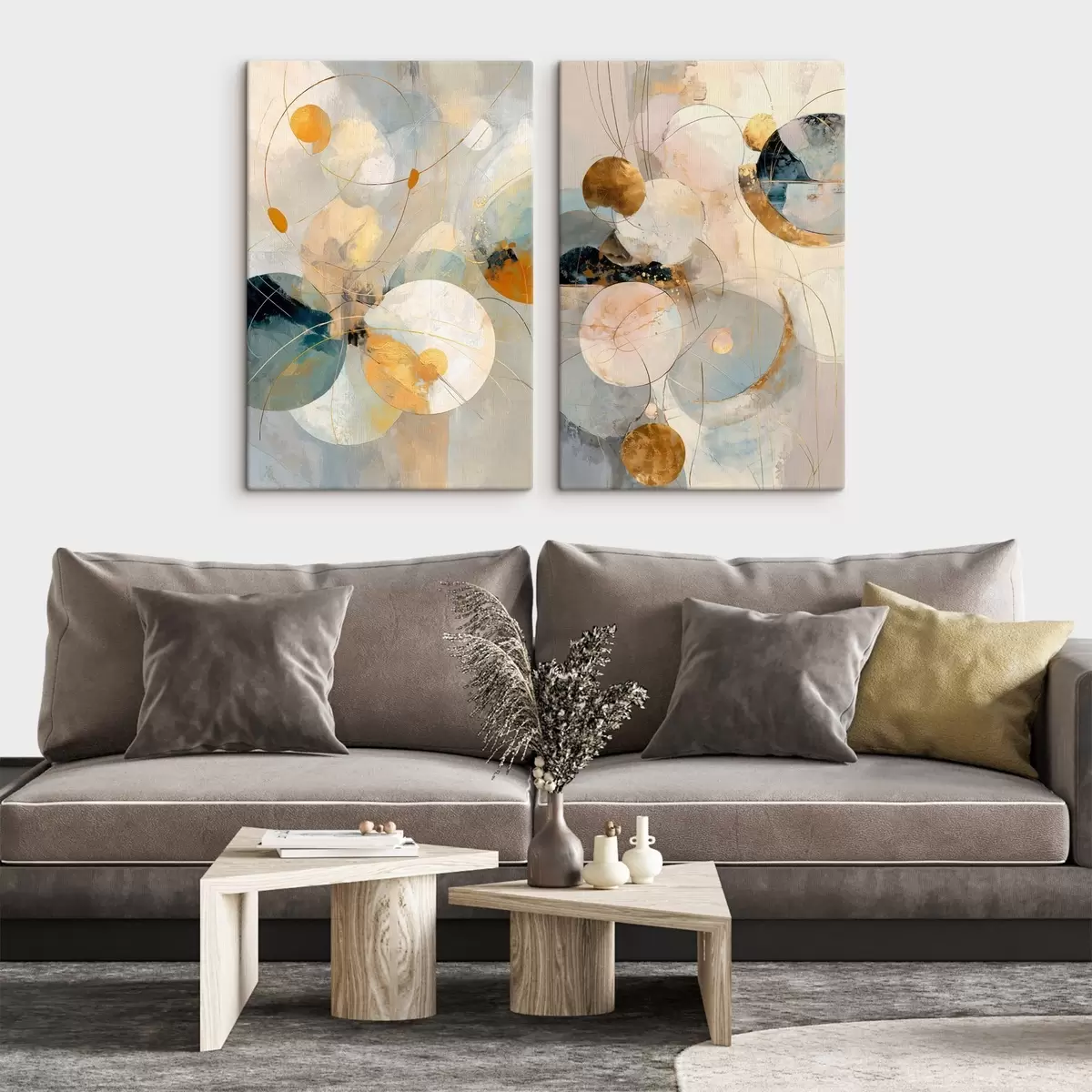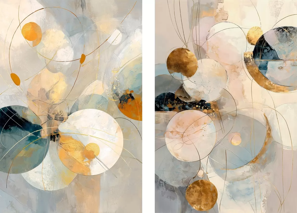 Картина Декоративне мистецтво в блакитно-кремових тонах з ефектом м'якого світла Арт. m30039