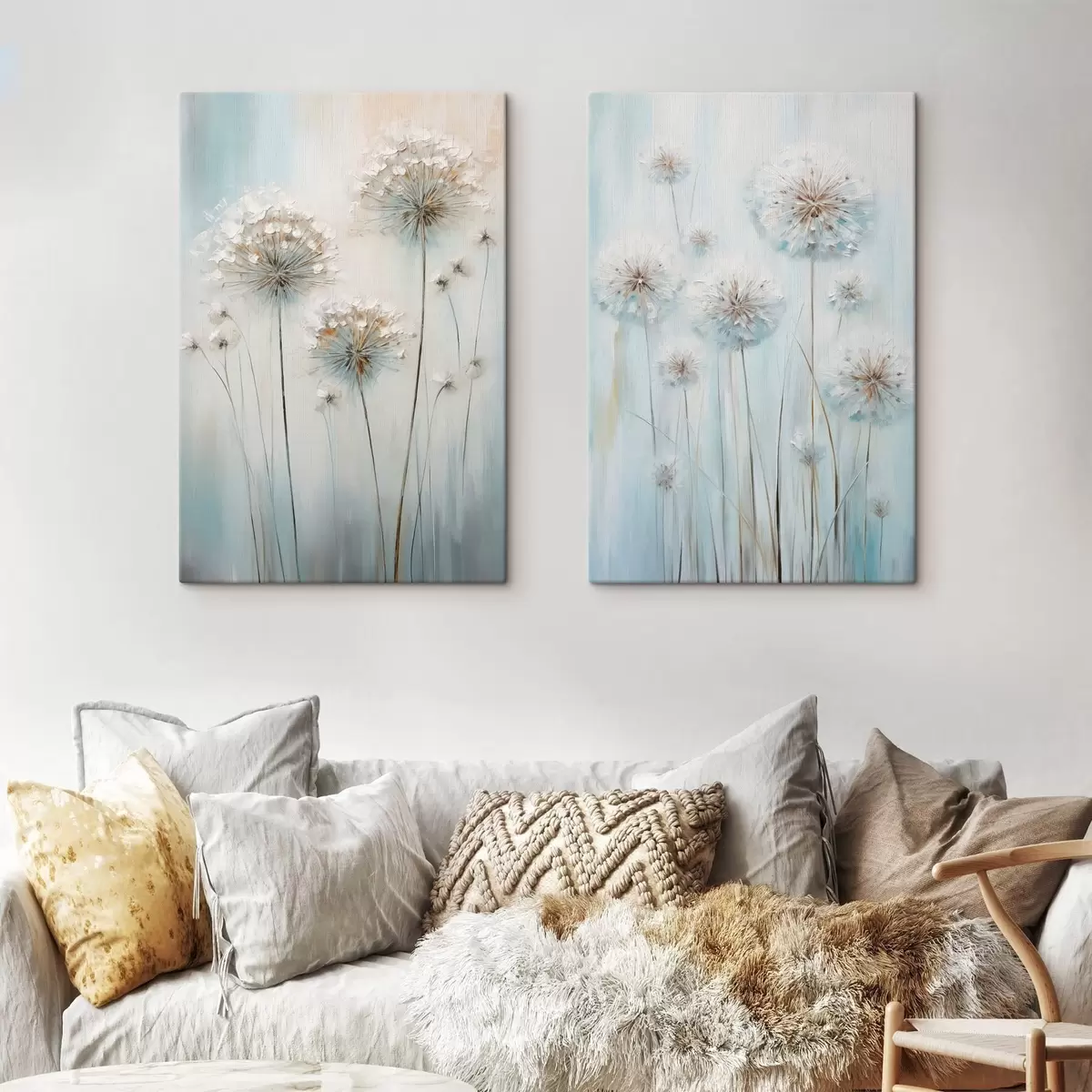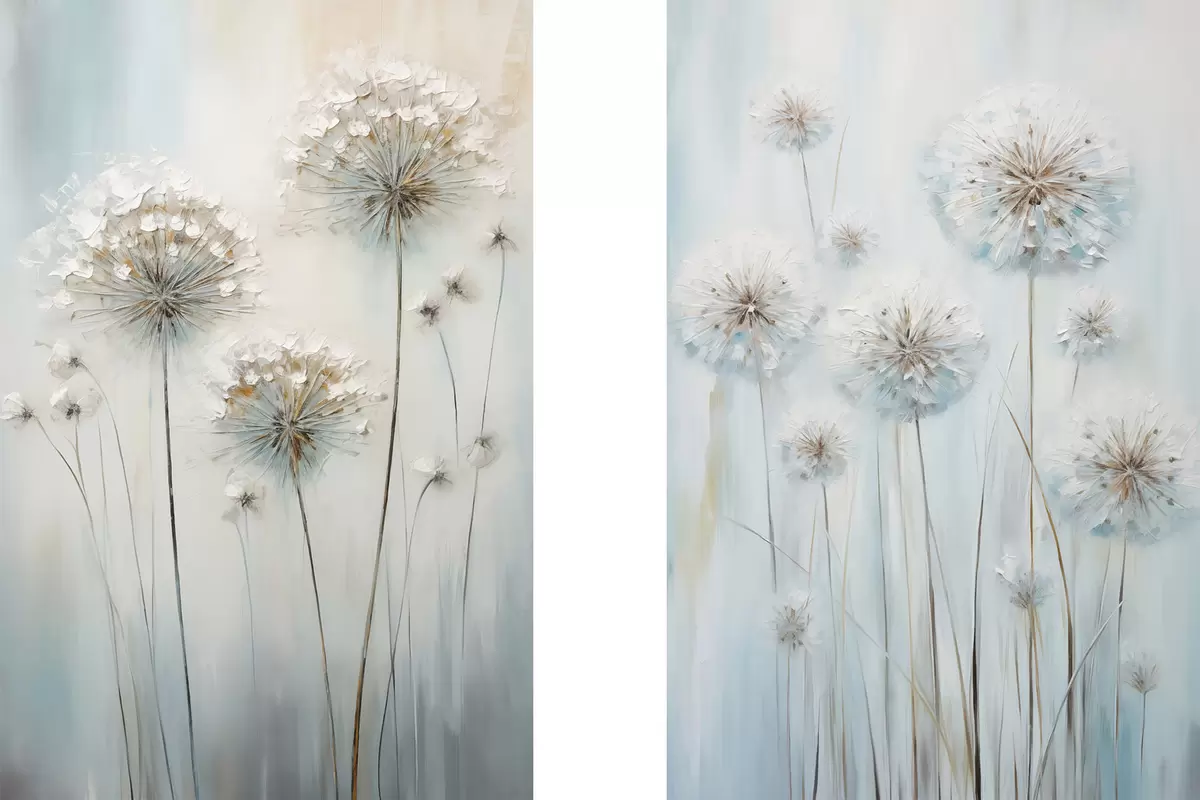 Картина Текстурований стиль малювання кульбаб на м'якому блакитно-білому тлі Арт. m30048
