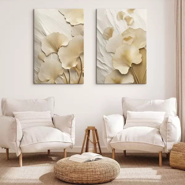Картина Абстрактні листя гінкго на текстурованому світлому тлі, елегантна та абстрактна композиція Арт. m30054