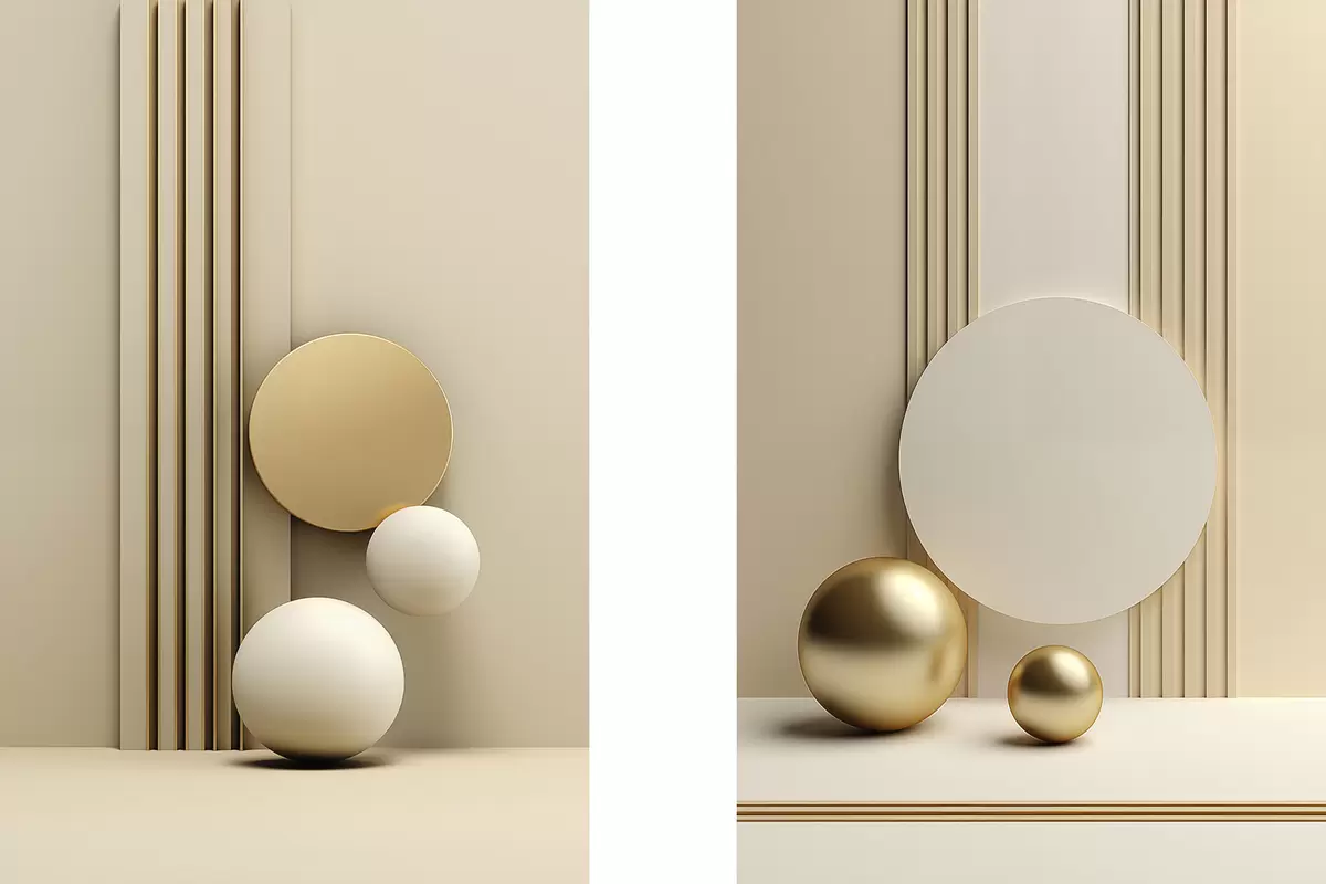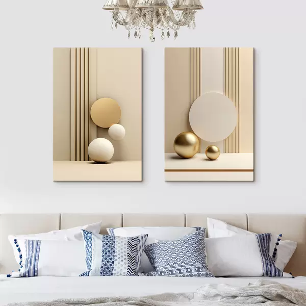 Картина Абстрактне бежеве сучасне мистецтво з вертикальними лініями та сферами m30056