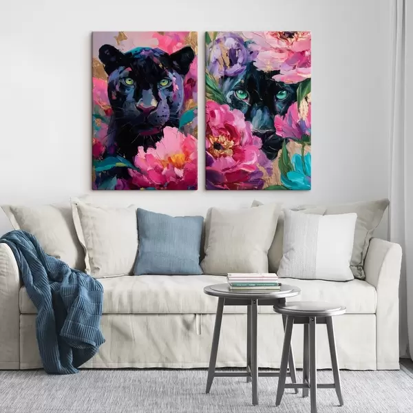 Картина чорна пантера серед півоній Арт. m30090