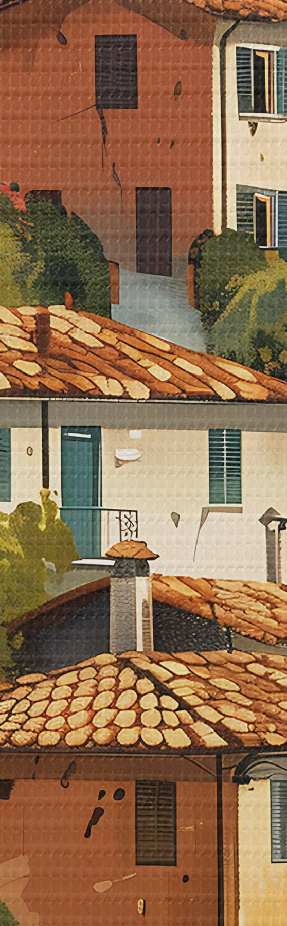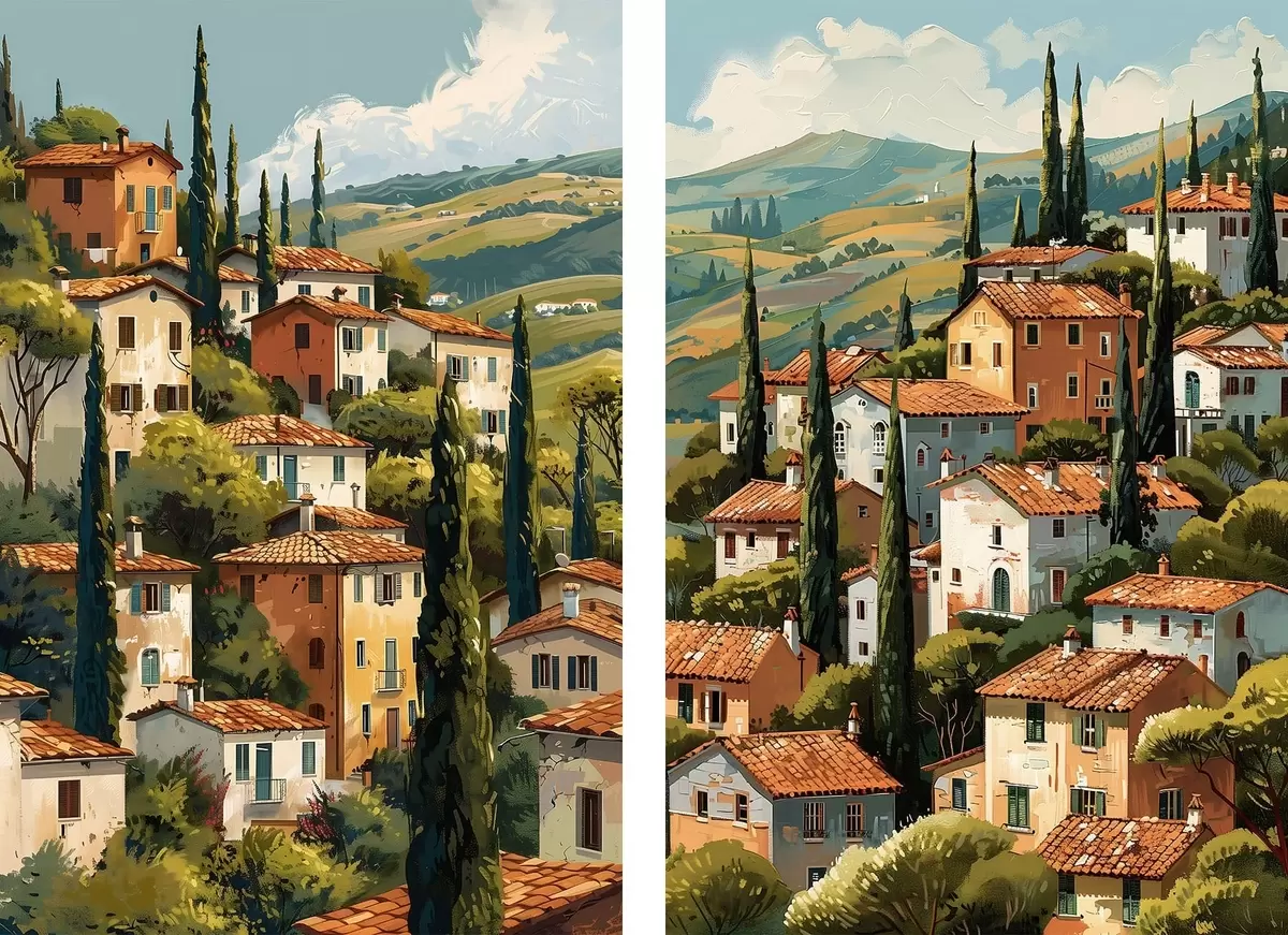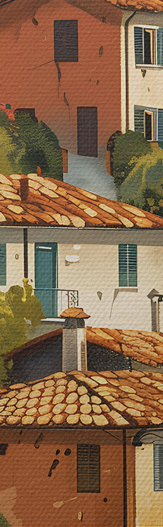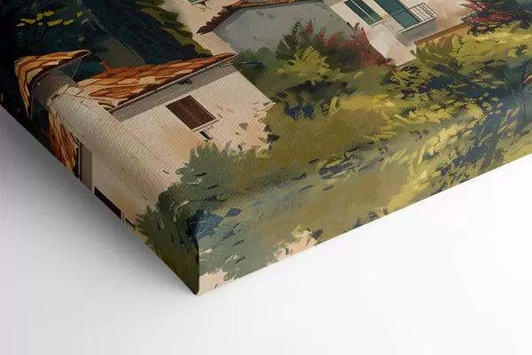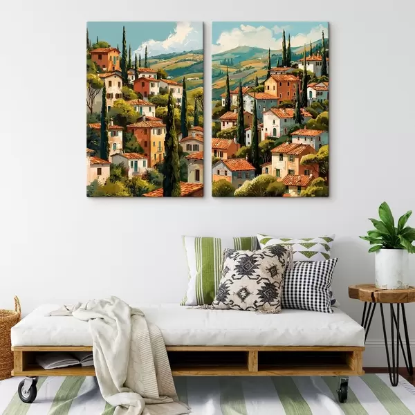 Картина середземноморське село на схилі пагорба, ряди будинків теплих відтінків з теракотовими дахами Арт. m30097