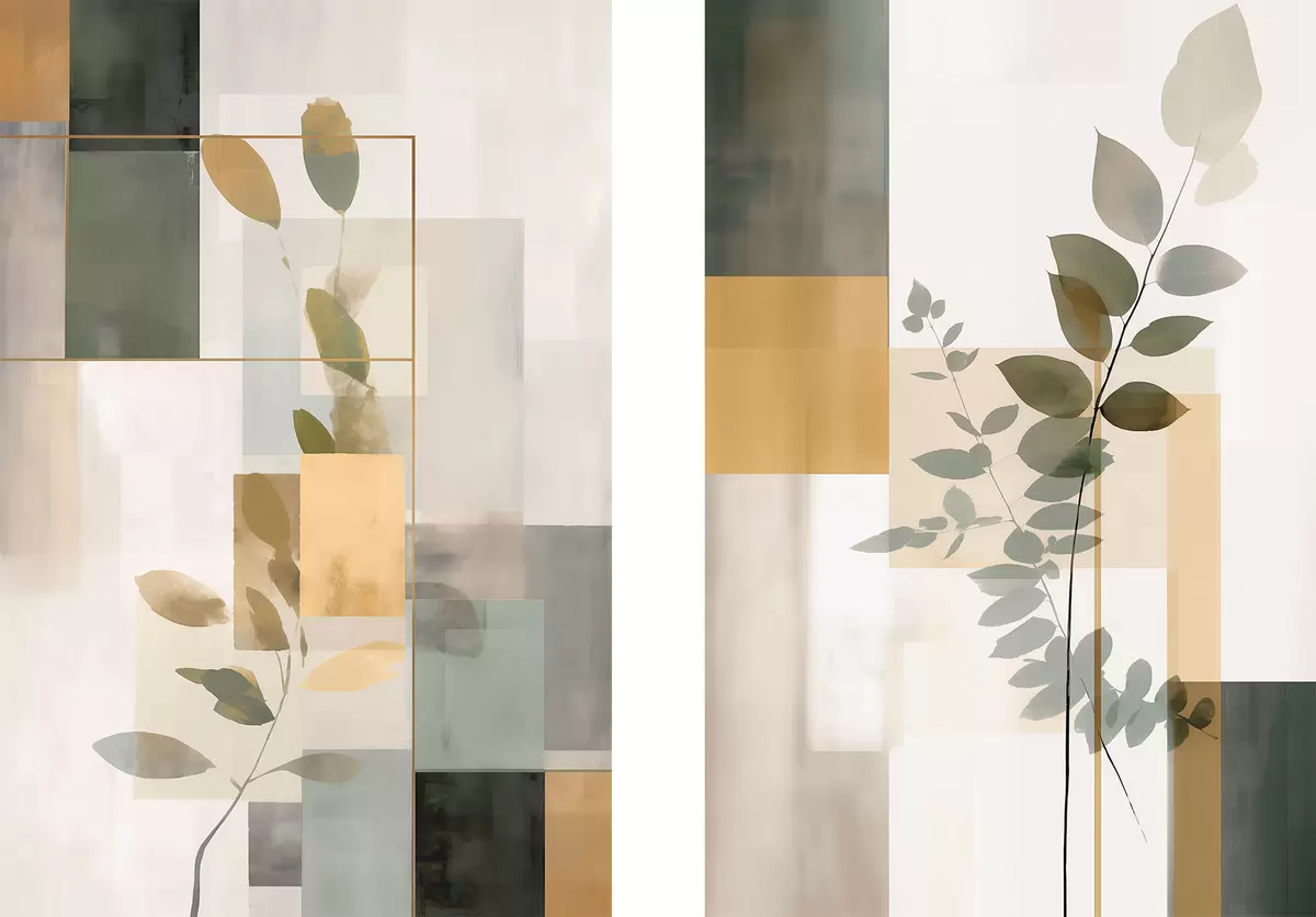 Картина Геометрична абстракція з гілками листя Арт. m30128