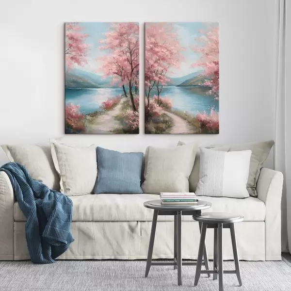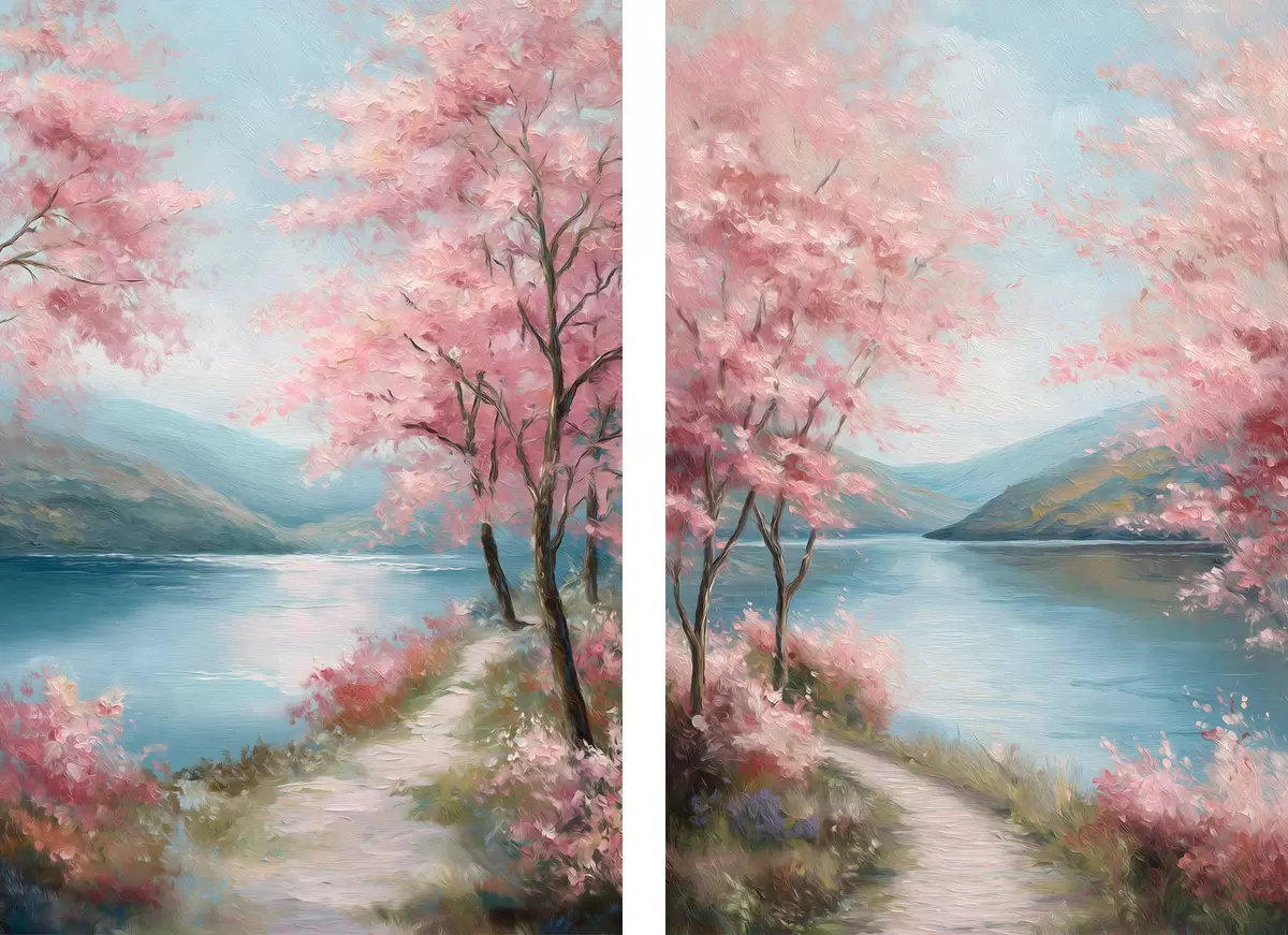 Картина пейзаж з рожевими деревами в олійному стилі Арт. m30176