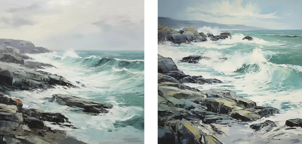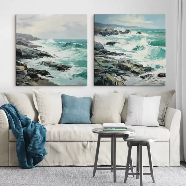 Картина Пейзаж скелястого узбережжя з хвилями під хмарним небом, у стилі живопису Арт. m30198