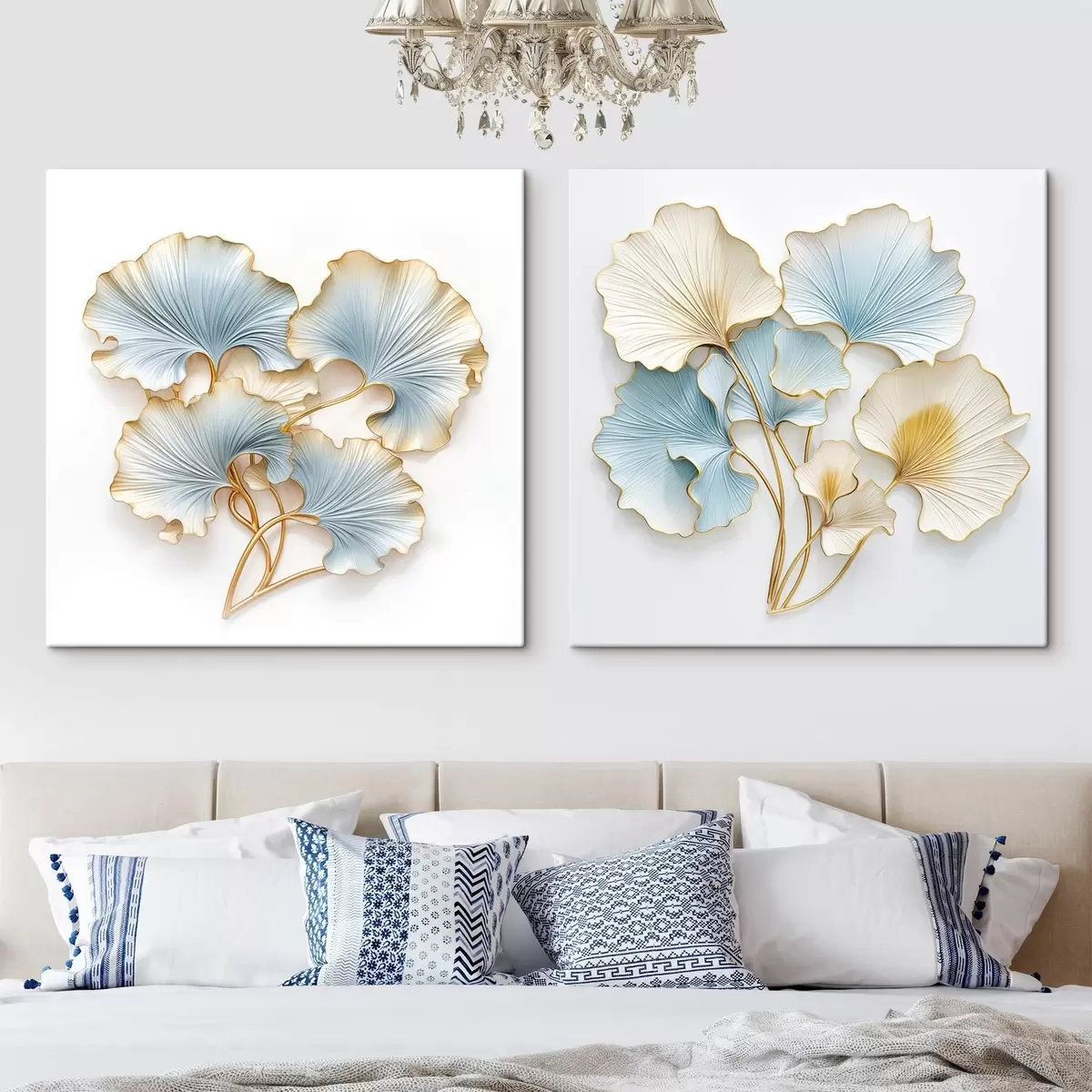 Картина Стилізовані листки гінкго з синіми та жовтими акцентами Арт. m30203