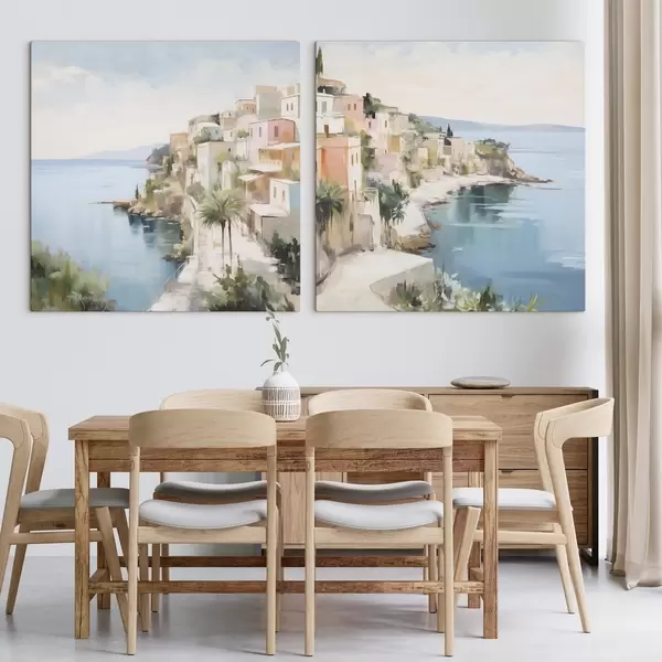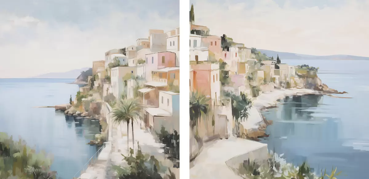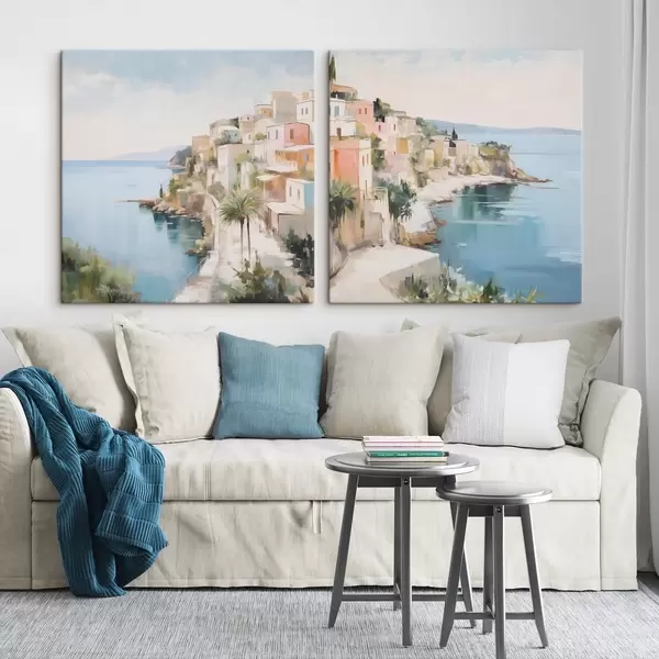 Картина Пейзаж міста біля моря, імітація живопису Арт. m30295