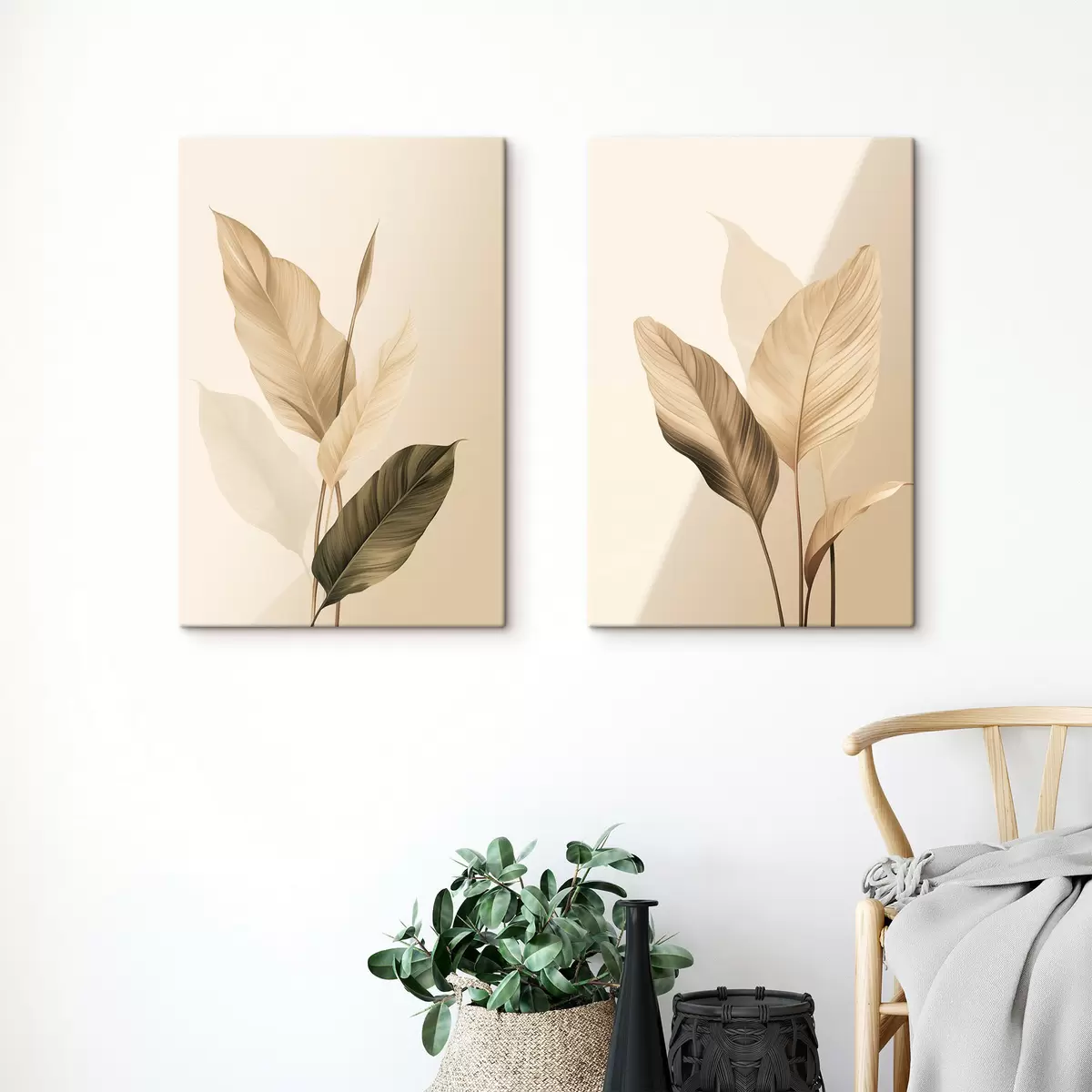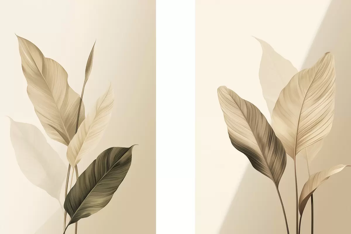 Картина Велике тропічне листя бежевих і коричневих відтінків на світлому тлі Арт. m30313