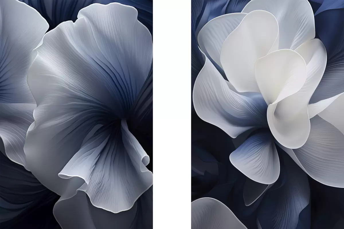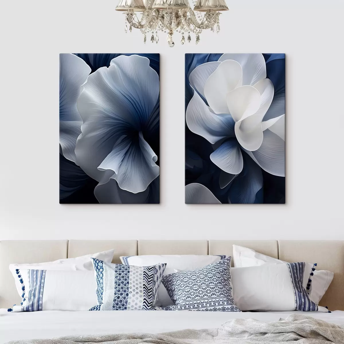 Картина Абстрактні синьо-білі пелюстки квітів на темному тлі Арт. m30316