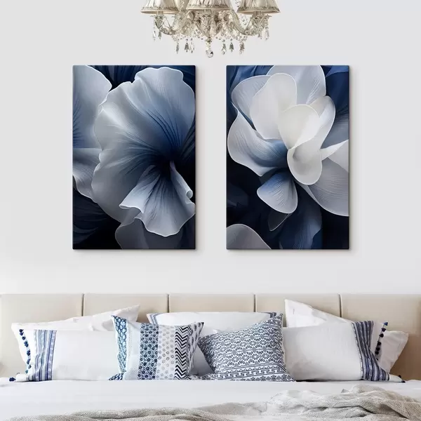 Картина Абстрактні синьо-білі пелюстки квітів на темному тлі m30316