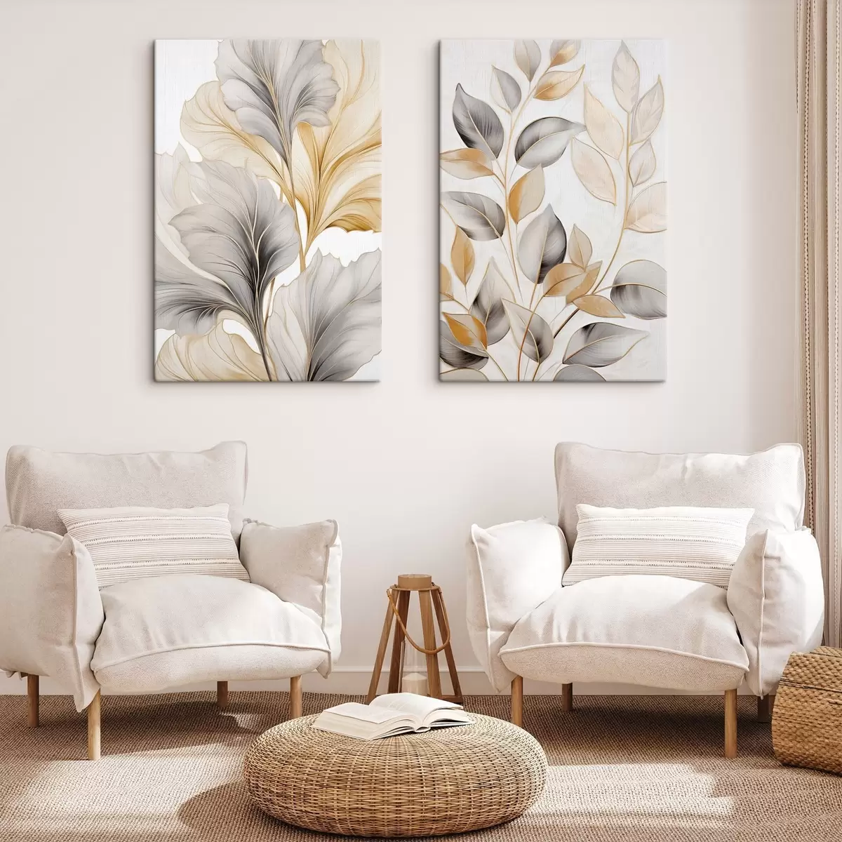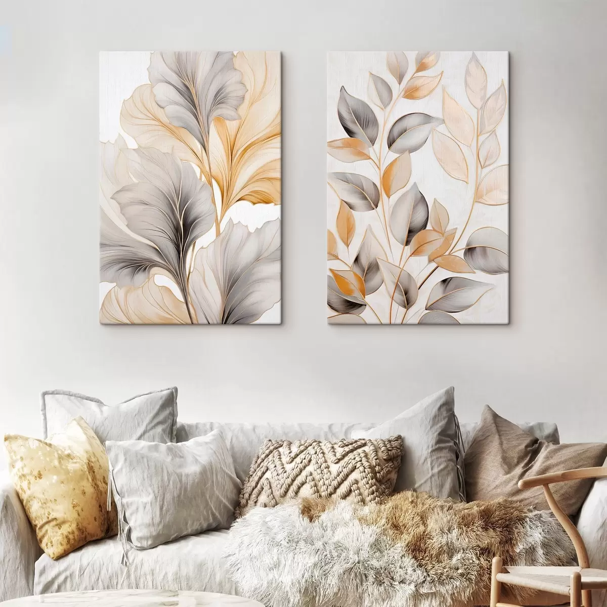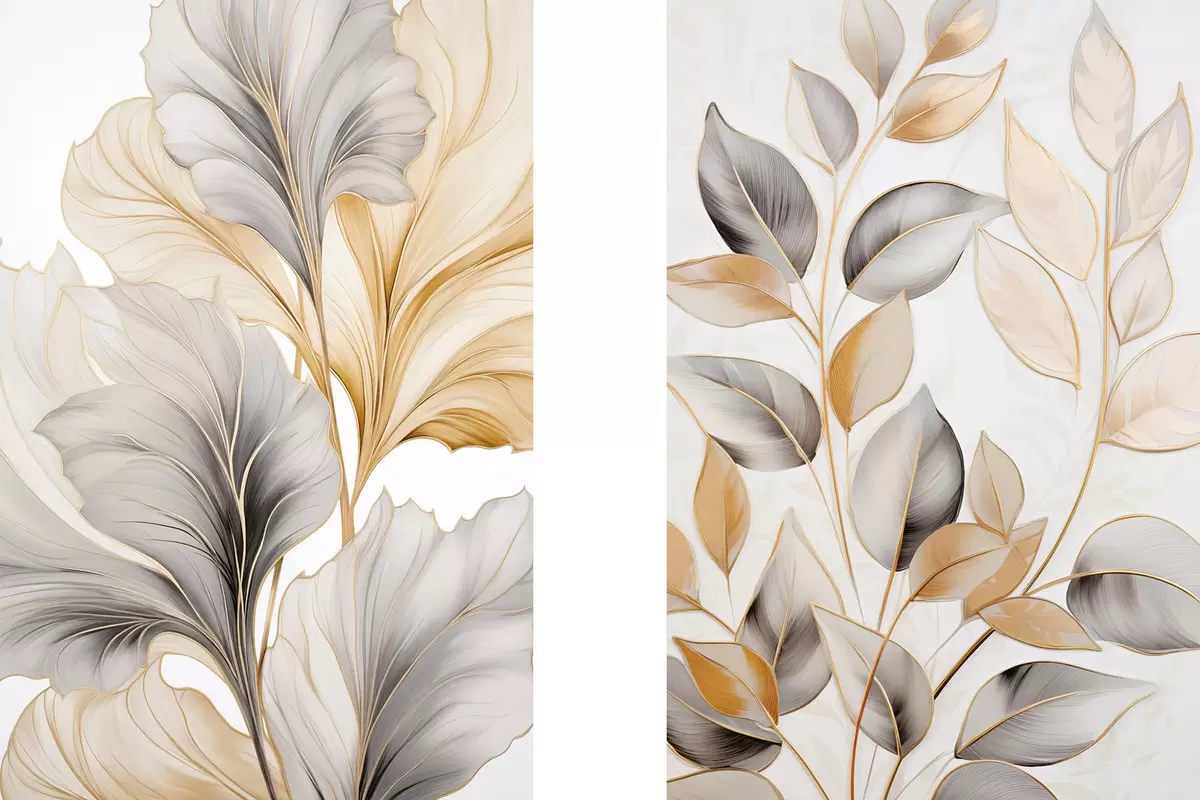 Картина Великі напівпрозорі листки сіро-жовтих відтінків m30323