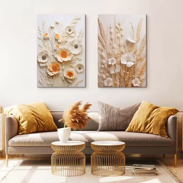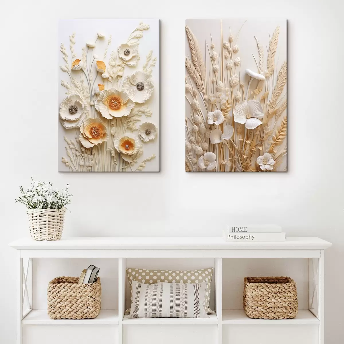 Картина Букет з кремових та помаранчевих маків із сушеними стеблами пшениці Арт. m30324