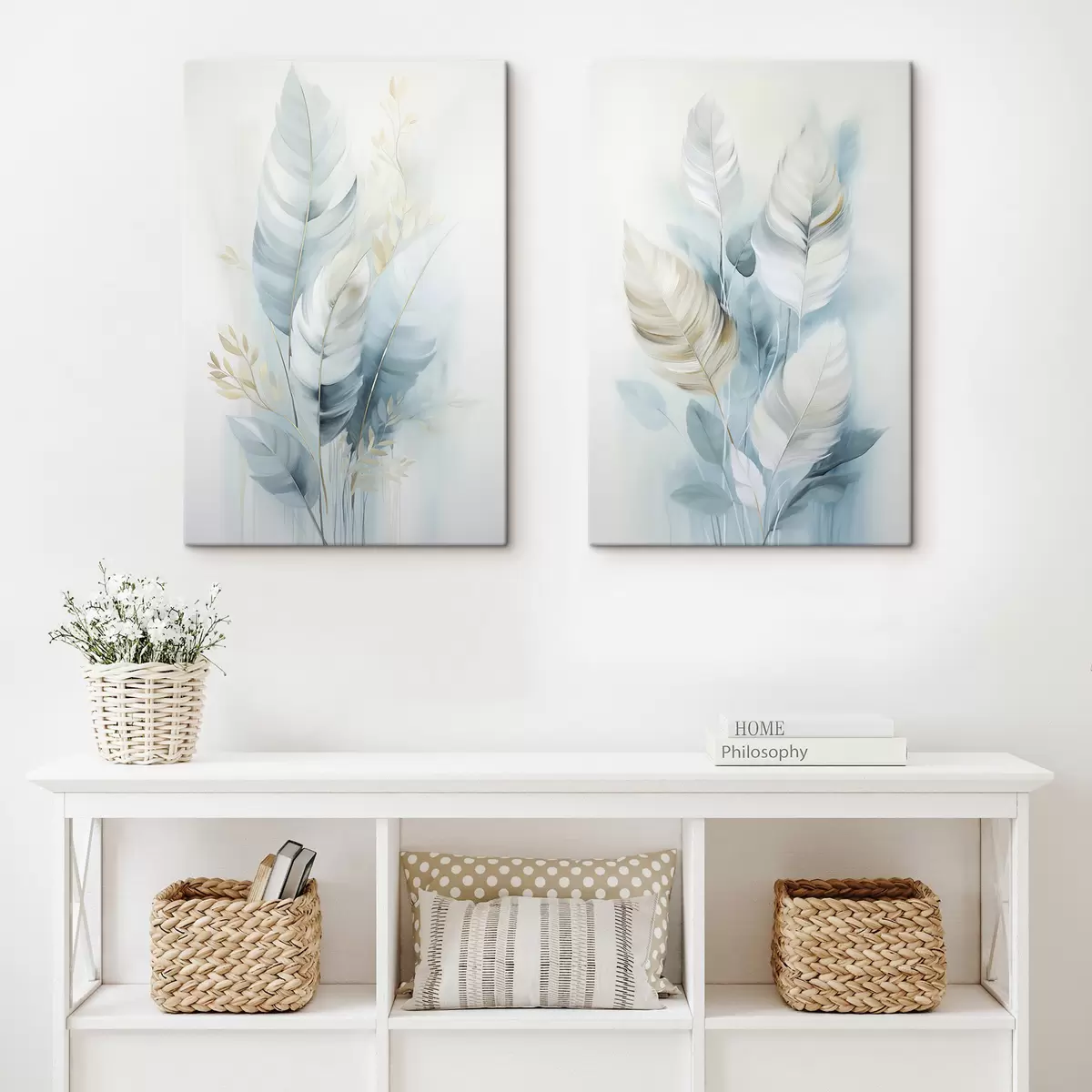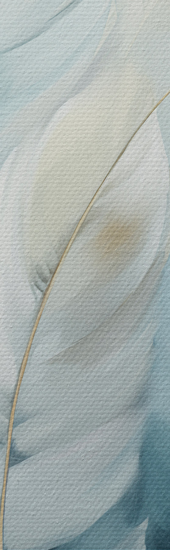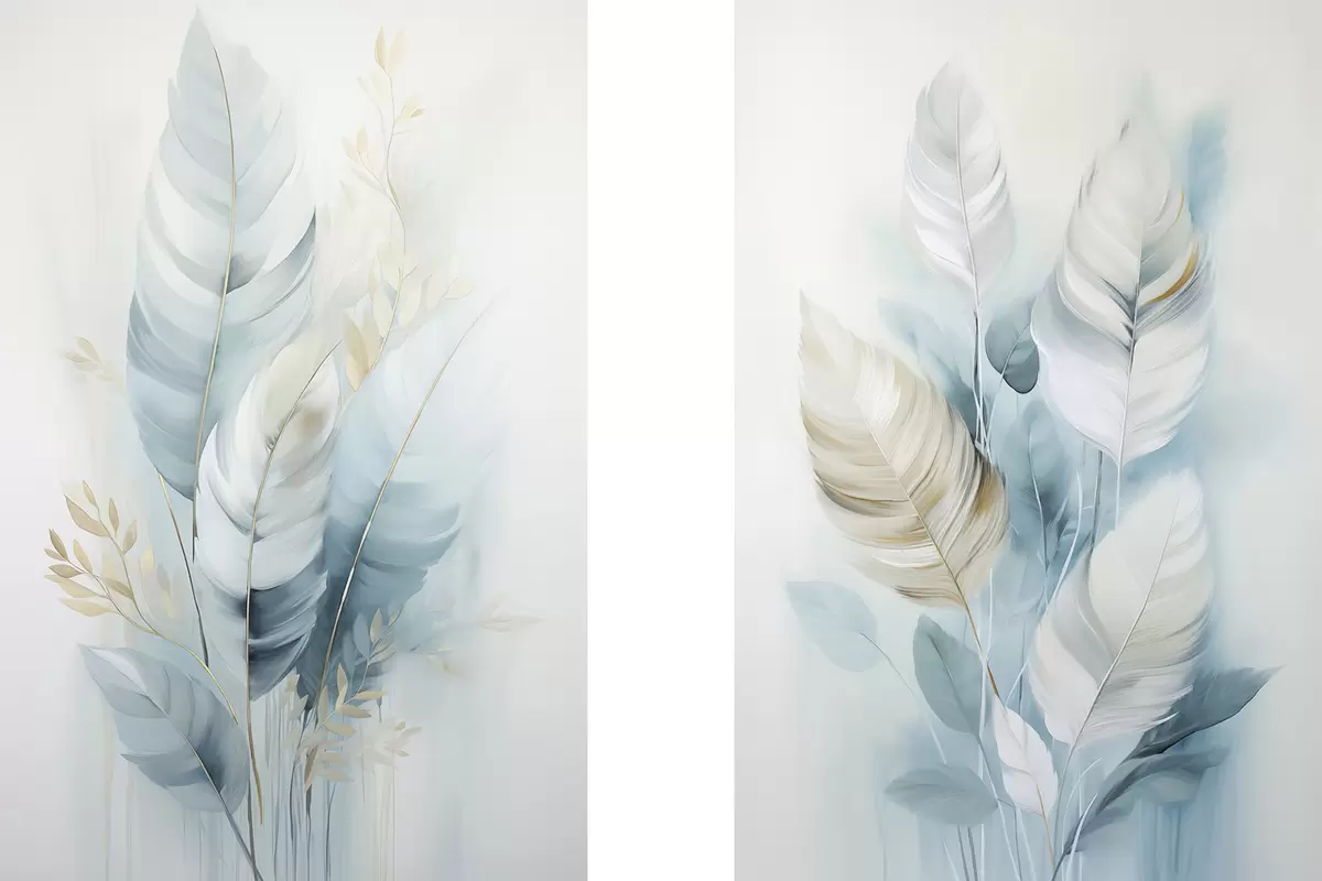 Картина Велике м'яке пір'я блакитних і білих відтінків з ніжними бежевими листочками Арт. m30325