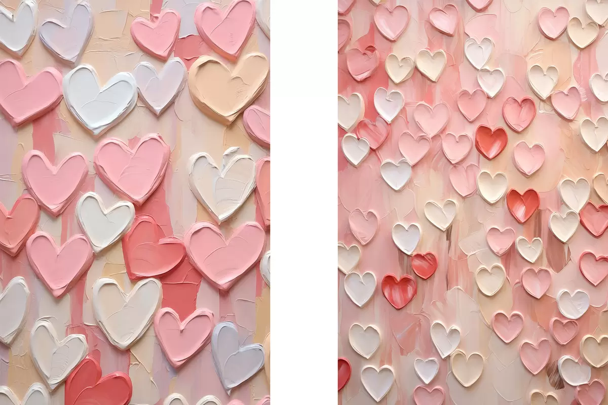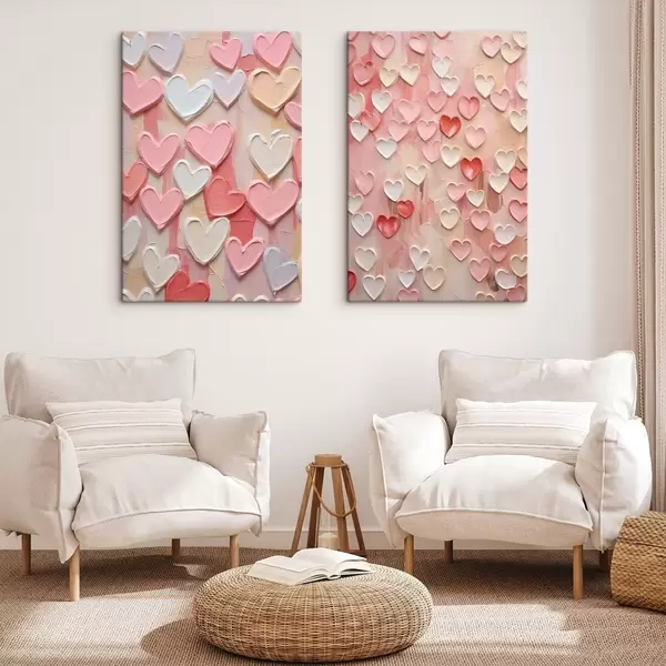 Картина Сердечка різних відтінків персикового та рожевого кольорів, виконані у фактурному, розмальованому стилі m30326