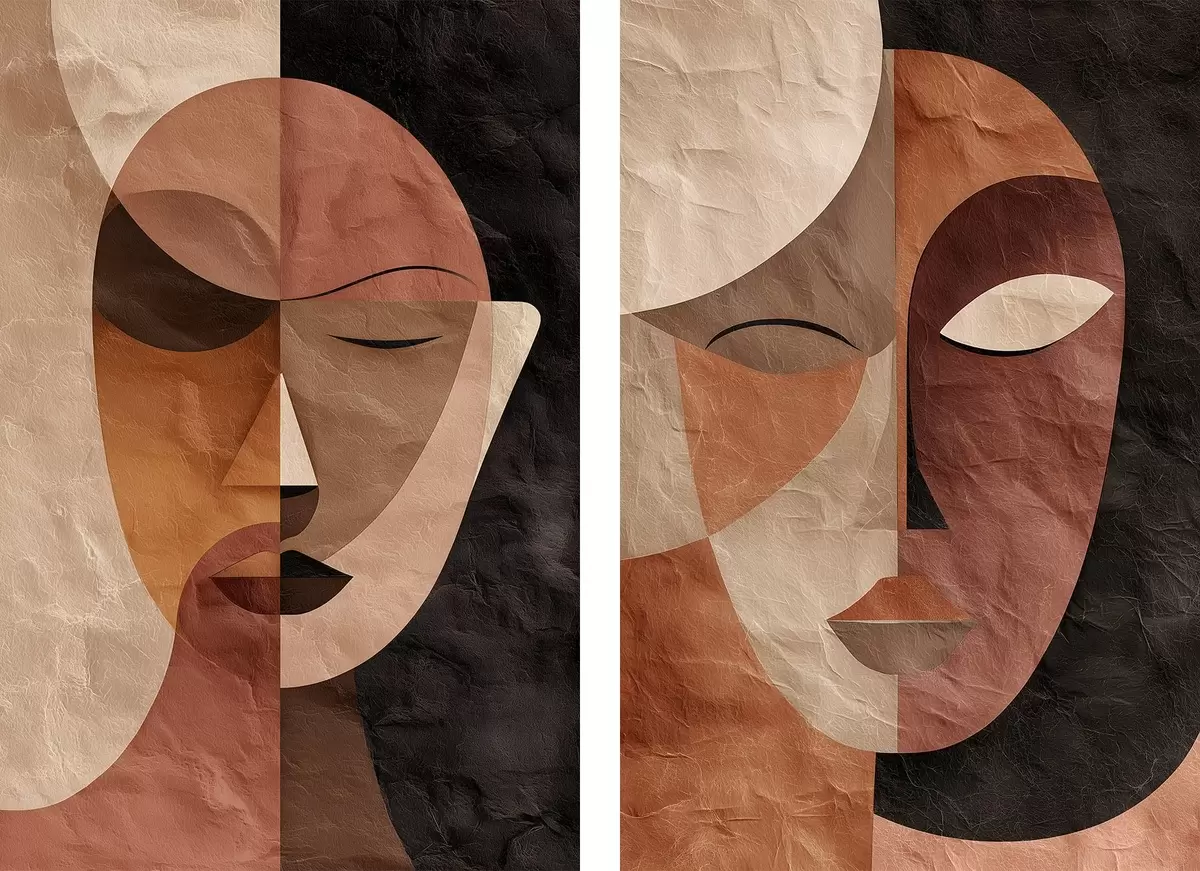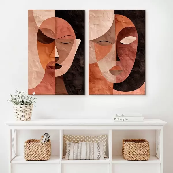 Картина абстрактні обличчя у відтінках кави Арт. m30329