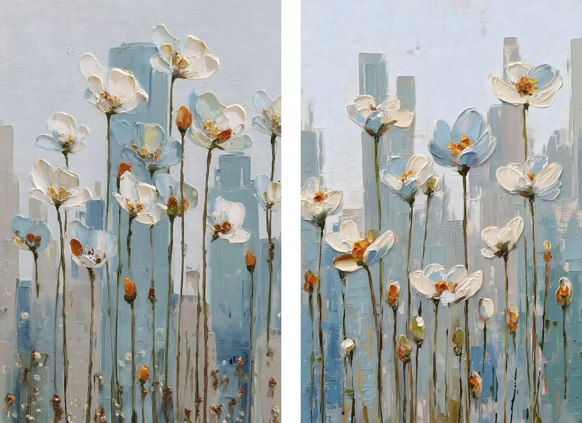 Картина квіти на тлі міста, у стилі олійного живопису Арт. m30333