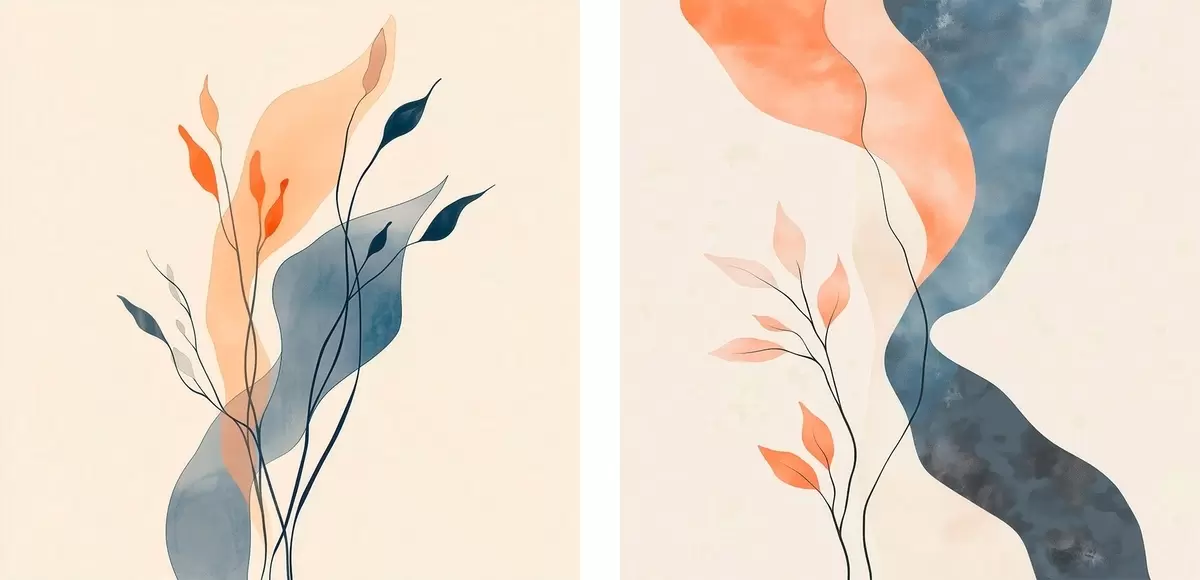 Картина Декоративні гілки з тонкими лініями у сучасному стилі живопису m30346