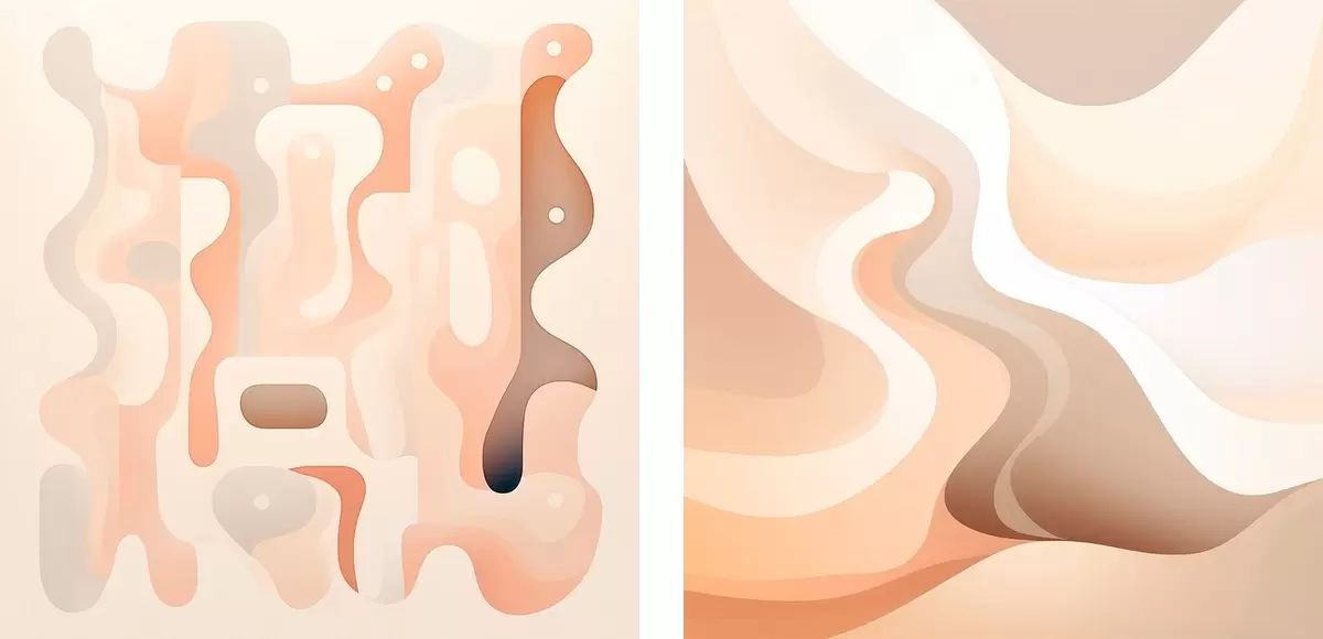 Картина Абстрактна композиція з плавними лініями та об’ємними формами у бежево-коричневій гамі m30349