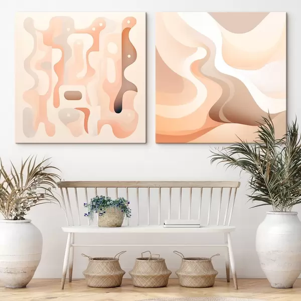 Картина Абстрактна композиція з плавними лініями та об’ємними формами у бежево-коричневій гамі Арт. m30349