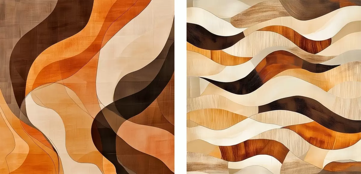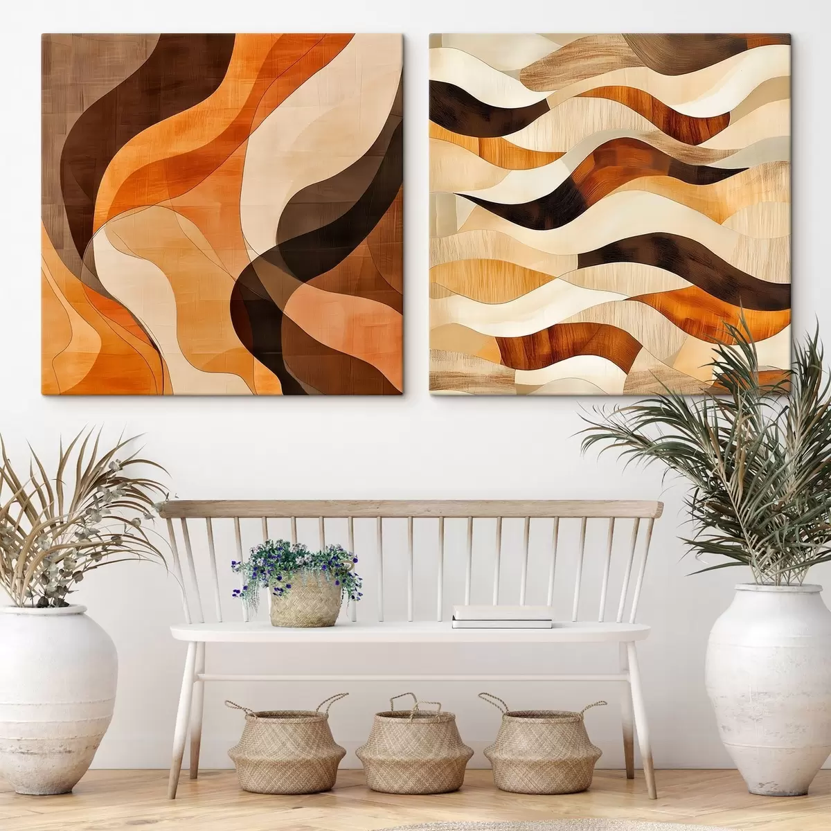 Картина Абстрактна композиція з хвилястими лініями у теплих коричнево-бежевих тонах Арт. m30352