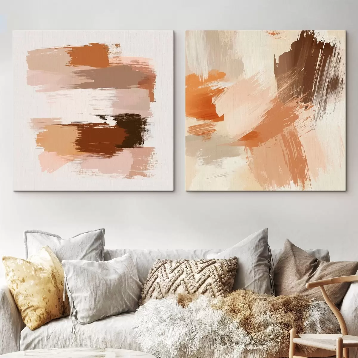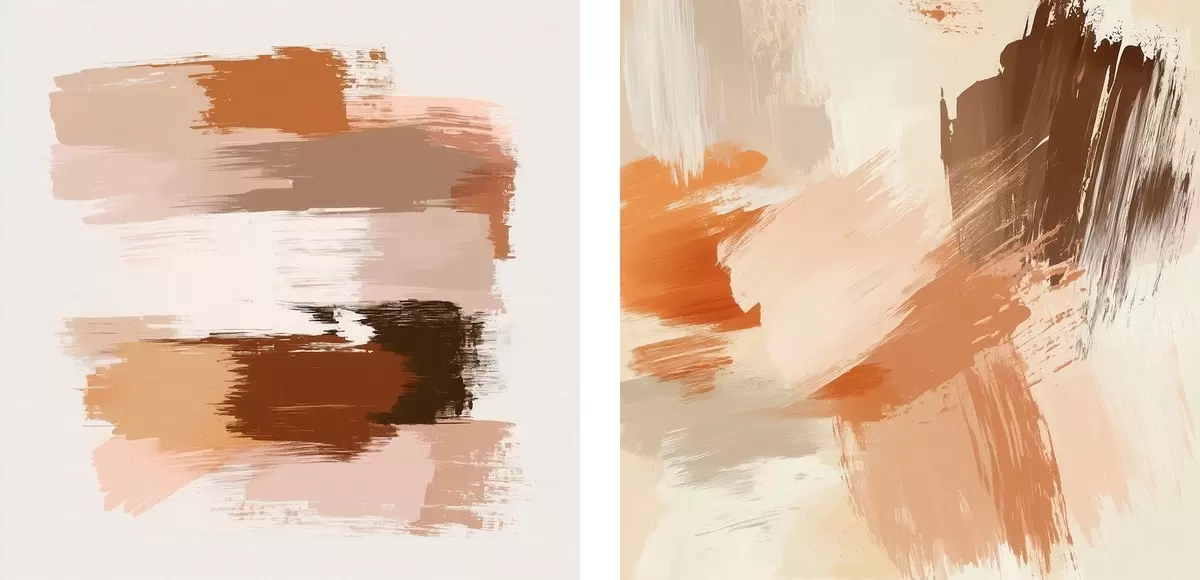 Картина Декоративне мистецтво у теплих коричнево-бежевих тонах з ефектом живописного мазка m30355