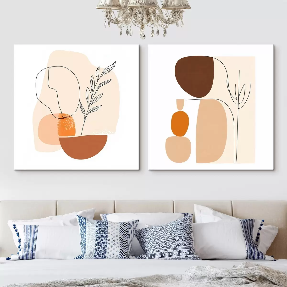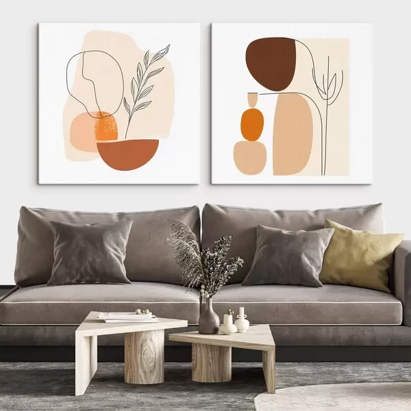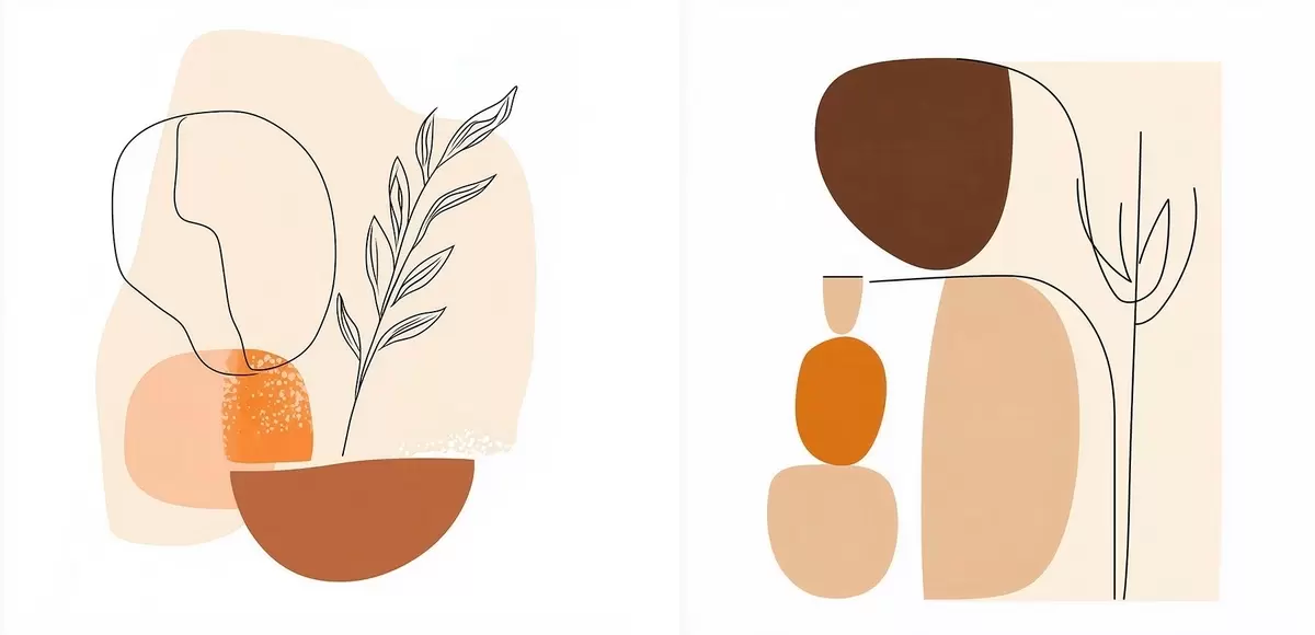 Картина Абстрактні квіти у теплій бежево-кораловій гамі: ілюстрація в мінімалістичному стилі m30362