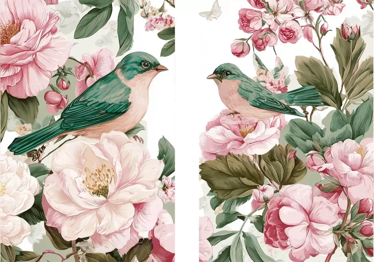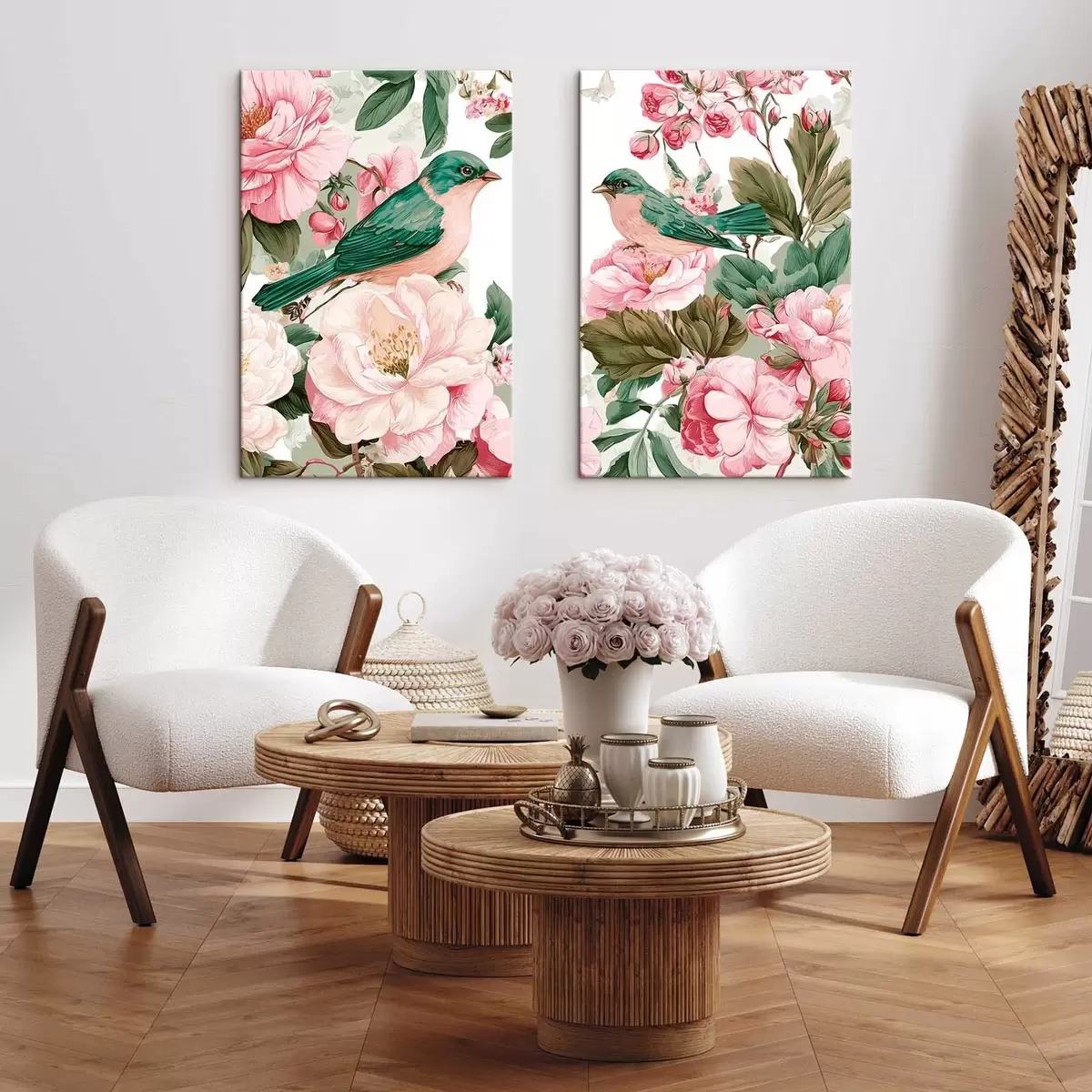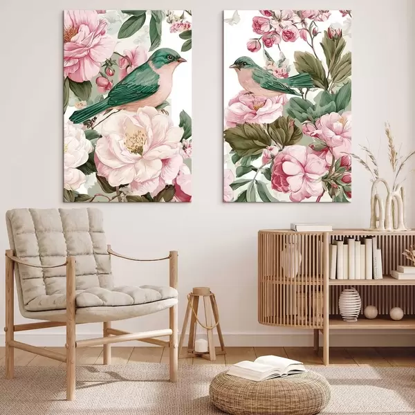 Картина Птахи на ніжних рожевих квітах Арт. m30386