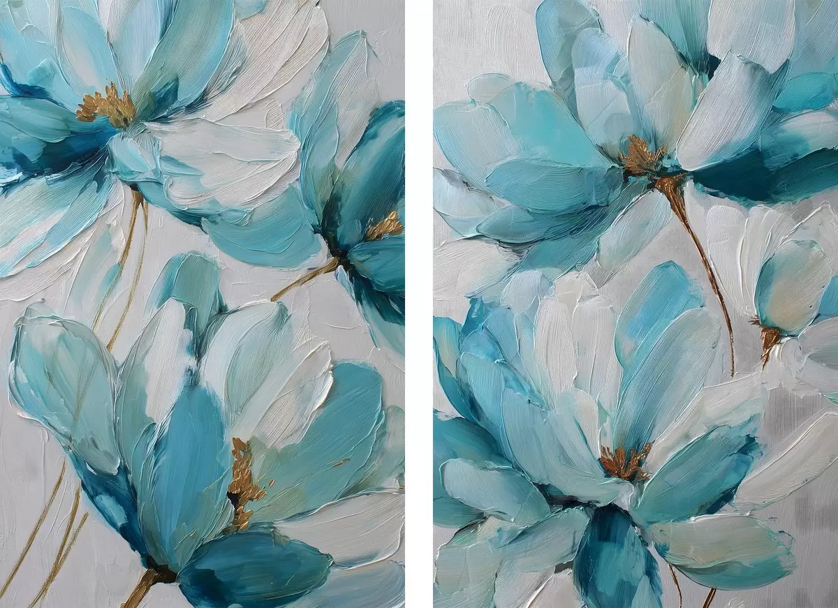 Картина сині квіти, виконані в техніці імпасто Арт. m30430