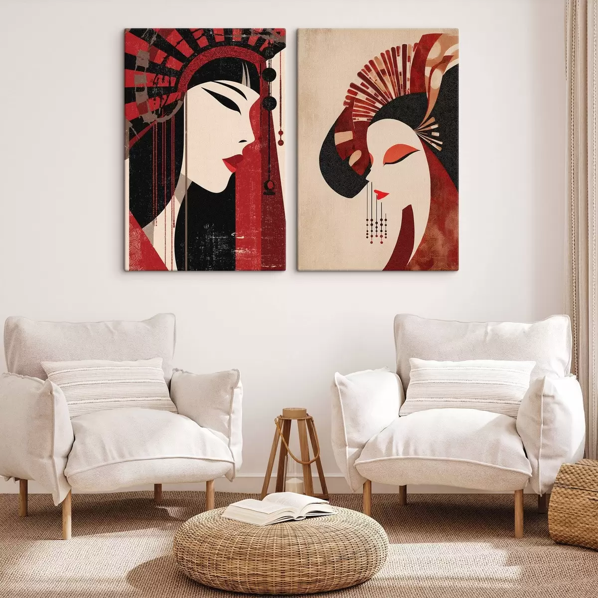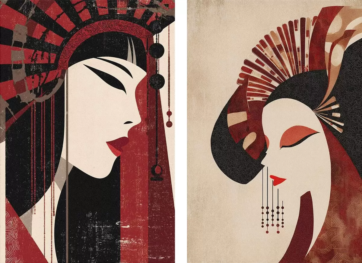 Картина стилізований портрет жінки, натхненний японською естетикою та стилем ар-деко m30431