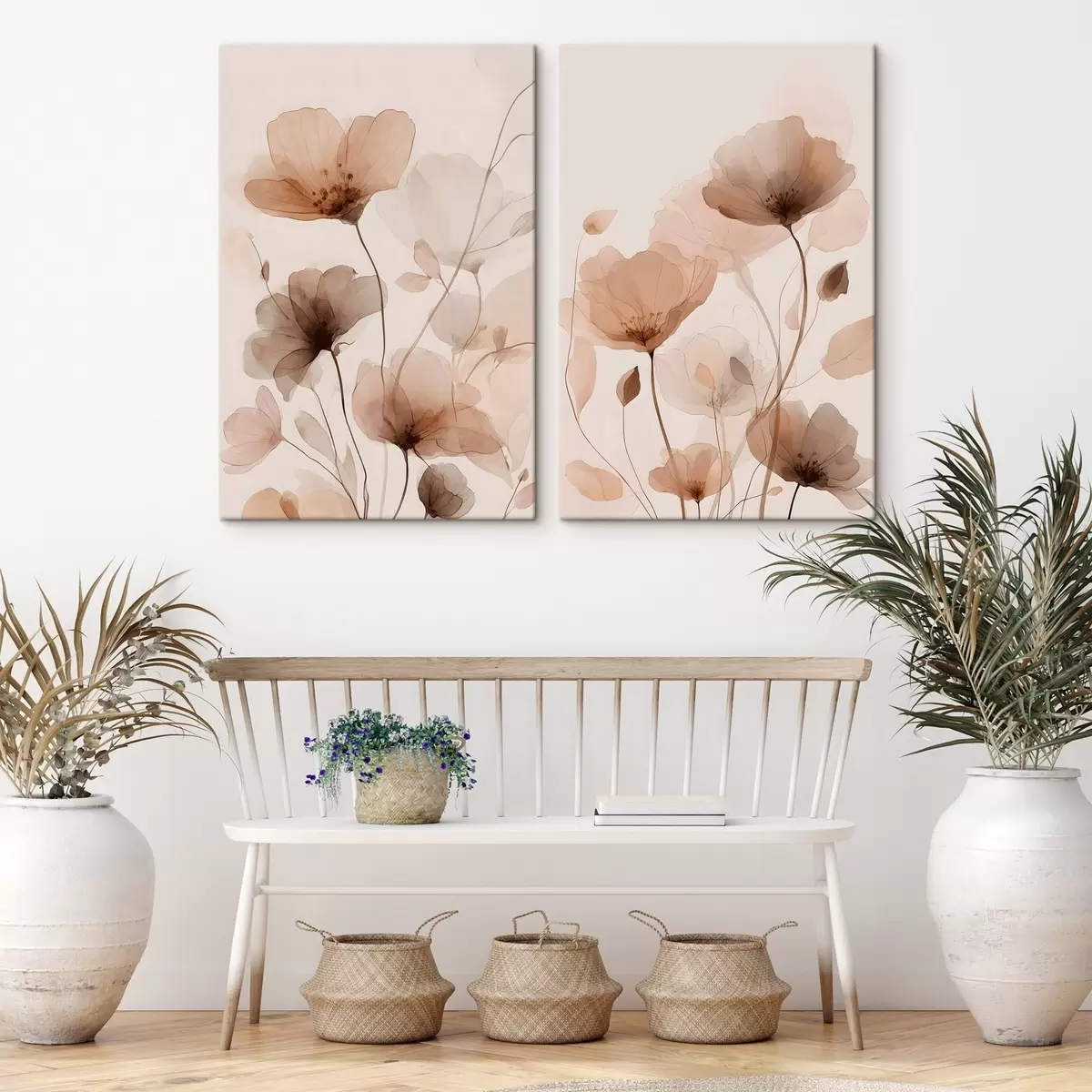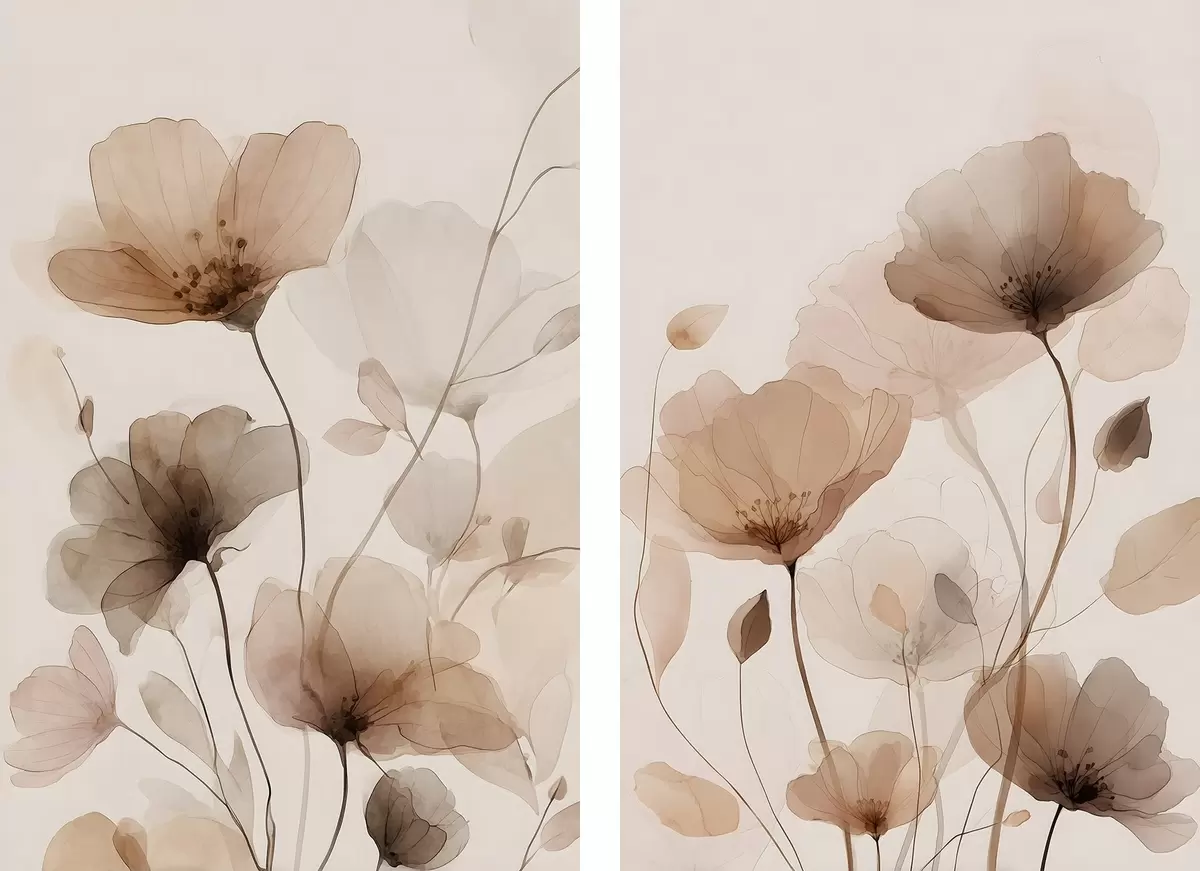 Картина акварельні квіти у відтінках коричневого m30435