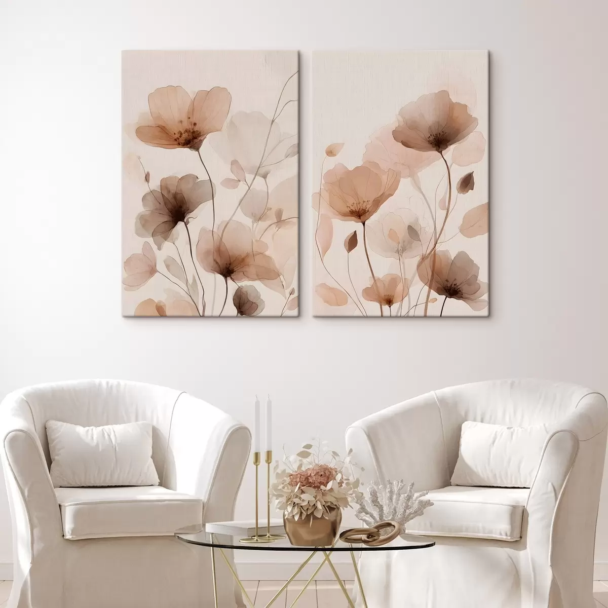 Картина акварельні квіти у відтінках коричневого Арт. m30435