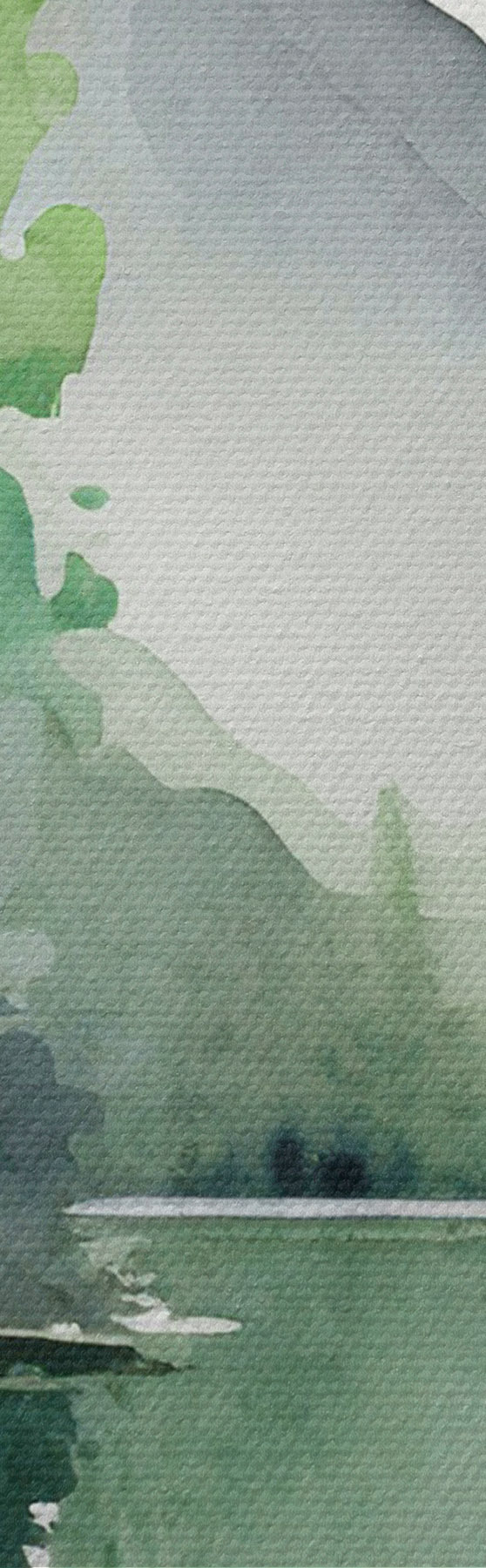 Картина Акварель Озерний та лісовий пейзаж, весна, м'які природні зелені кольори s36503