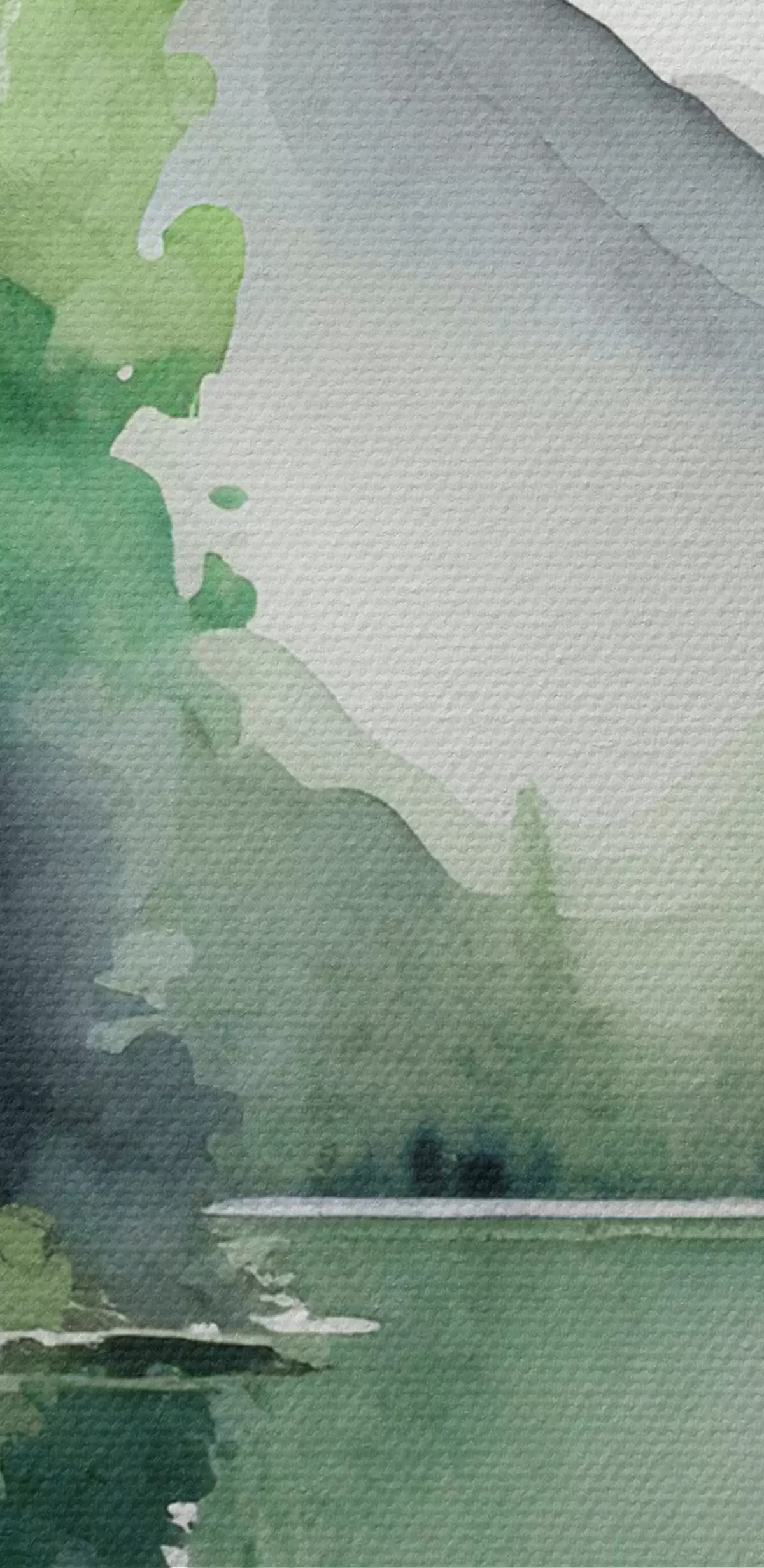 Картина Акварель Озерний та лісовий пейзаж, весна, м'які природні зелені кольори s36503