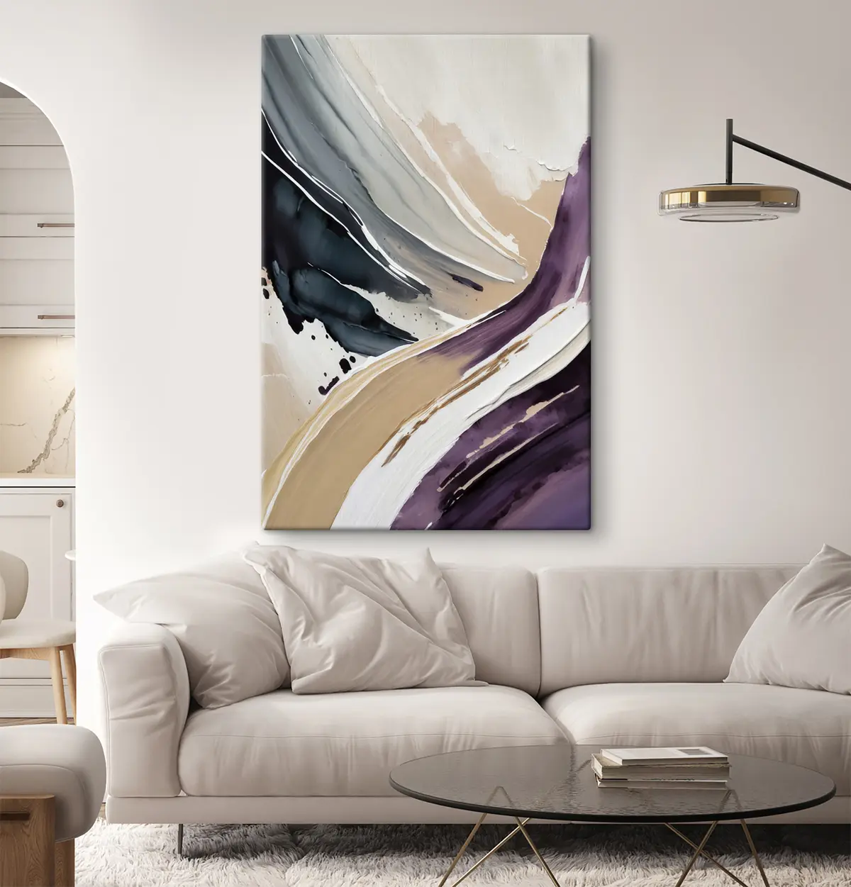 Картина Абстрактний акриловий живопис, мазок пензлем, текстура фарби, бежевий, фіолетовий, синій кольори Арт. s36504
