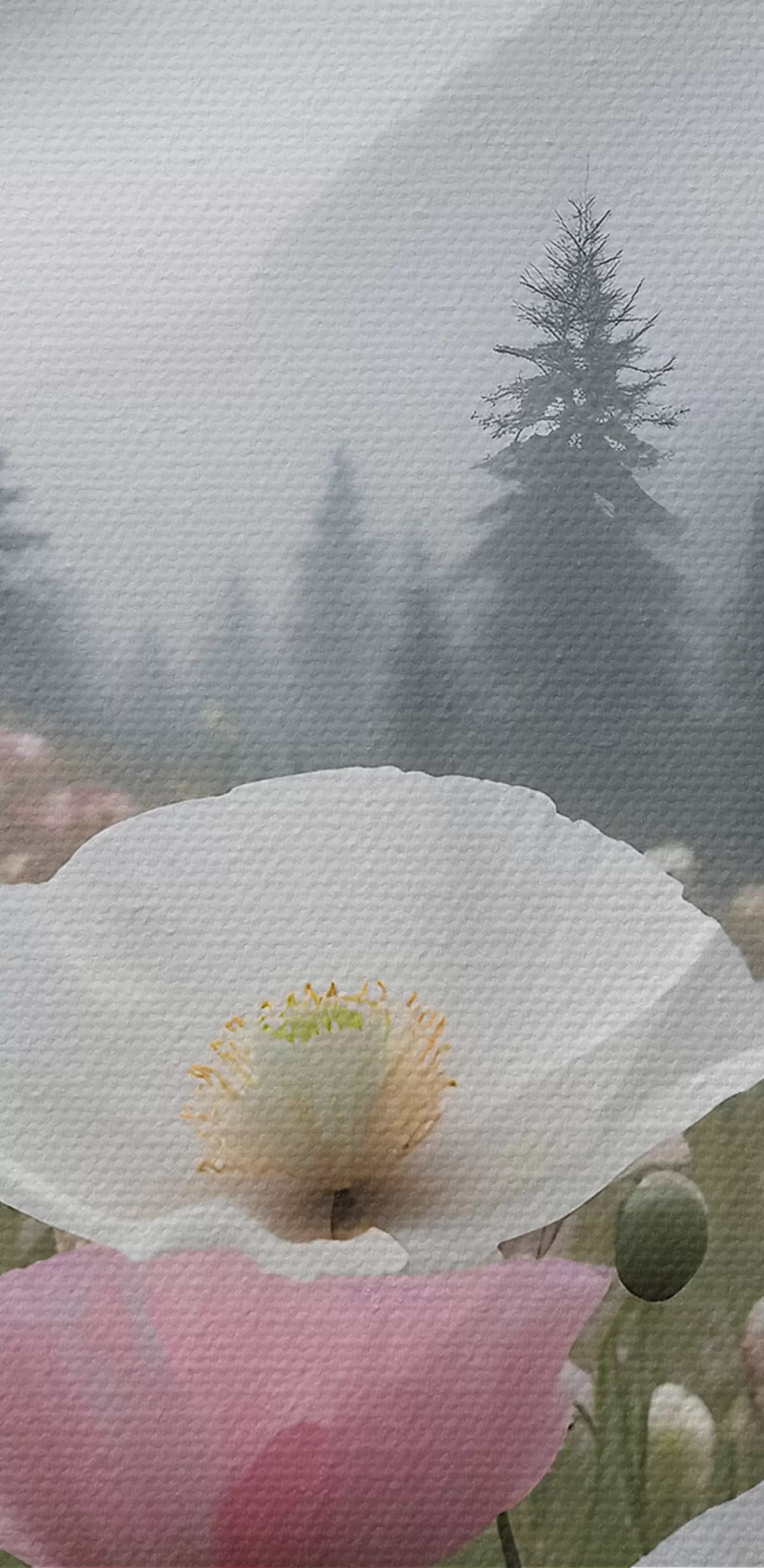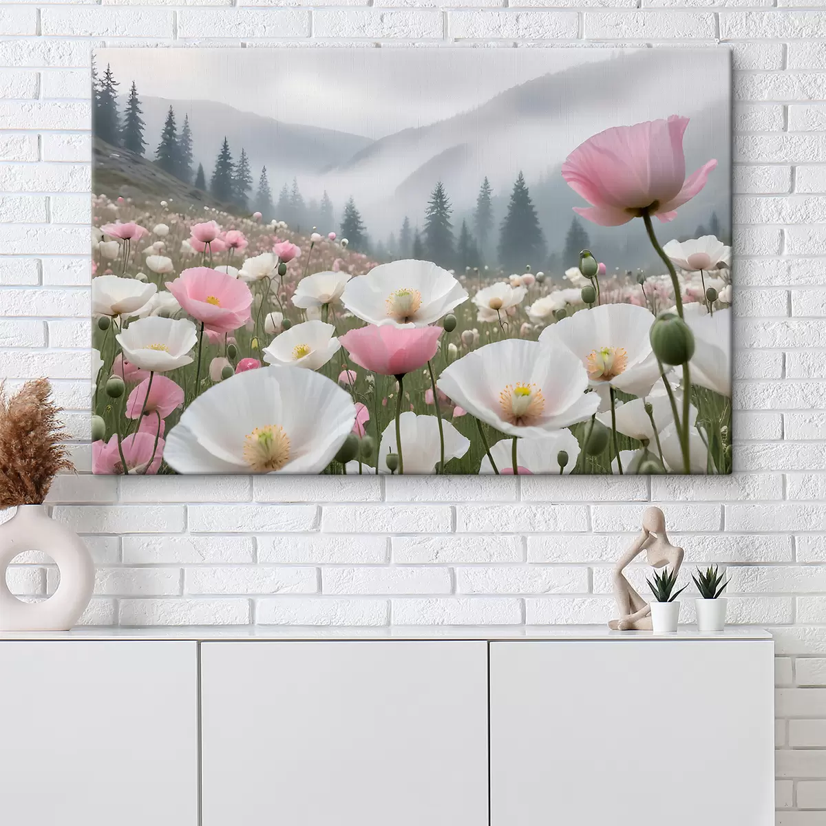 Картина Поле рожевих і білих маків у гірському ландшафті на задньому плані Арт. s38369
