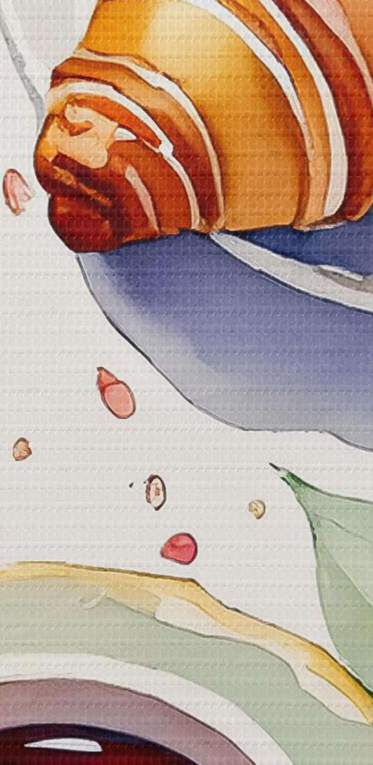 Картина Круасан акварель, чашка чаю, сніданок, лимони, сільському стилі s38389